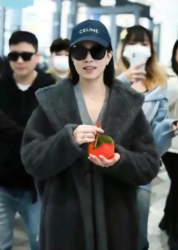 佘诗曼的机场私服,把“松弛感”焊在了身上! 一件深灰色的羊羔毛大衣,内搭简约