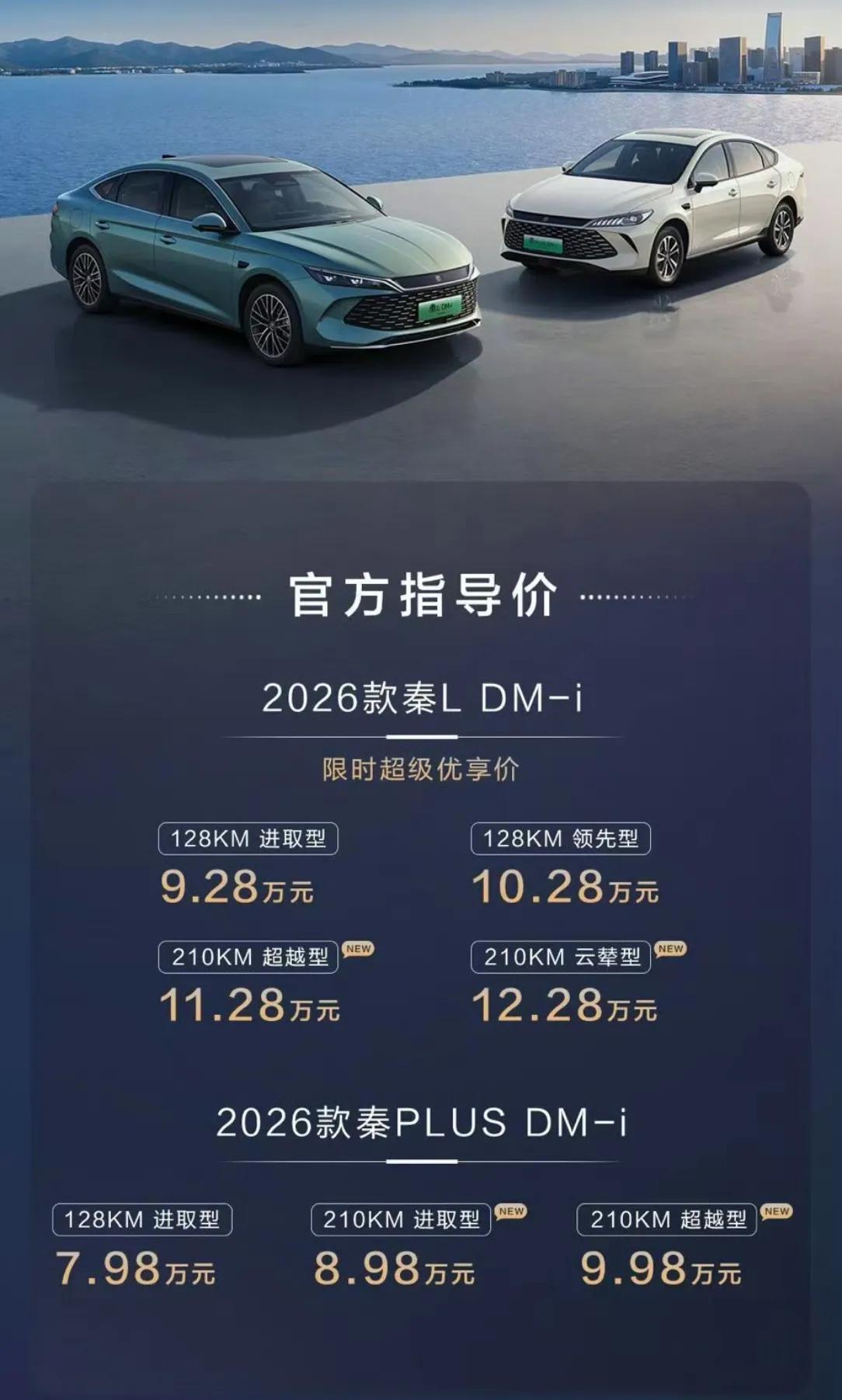 比亚迪2026款秦家族来背刺老客户了[捂脸] 10万以内的车型终于有车企把纯电续航干到200㎞,秦plus8.98万,纯电综合续航210㎞,不过标准应该是NEDC。 在当前汽车行业的竞争强度下,不背刺老车主的车企是活不下去的。 把车当成电子产品看,心里会稍微能接受背刺的感觉[捂脸]
