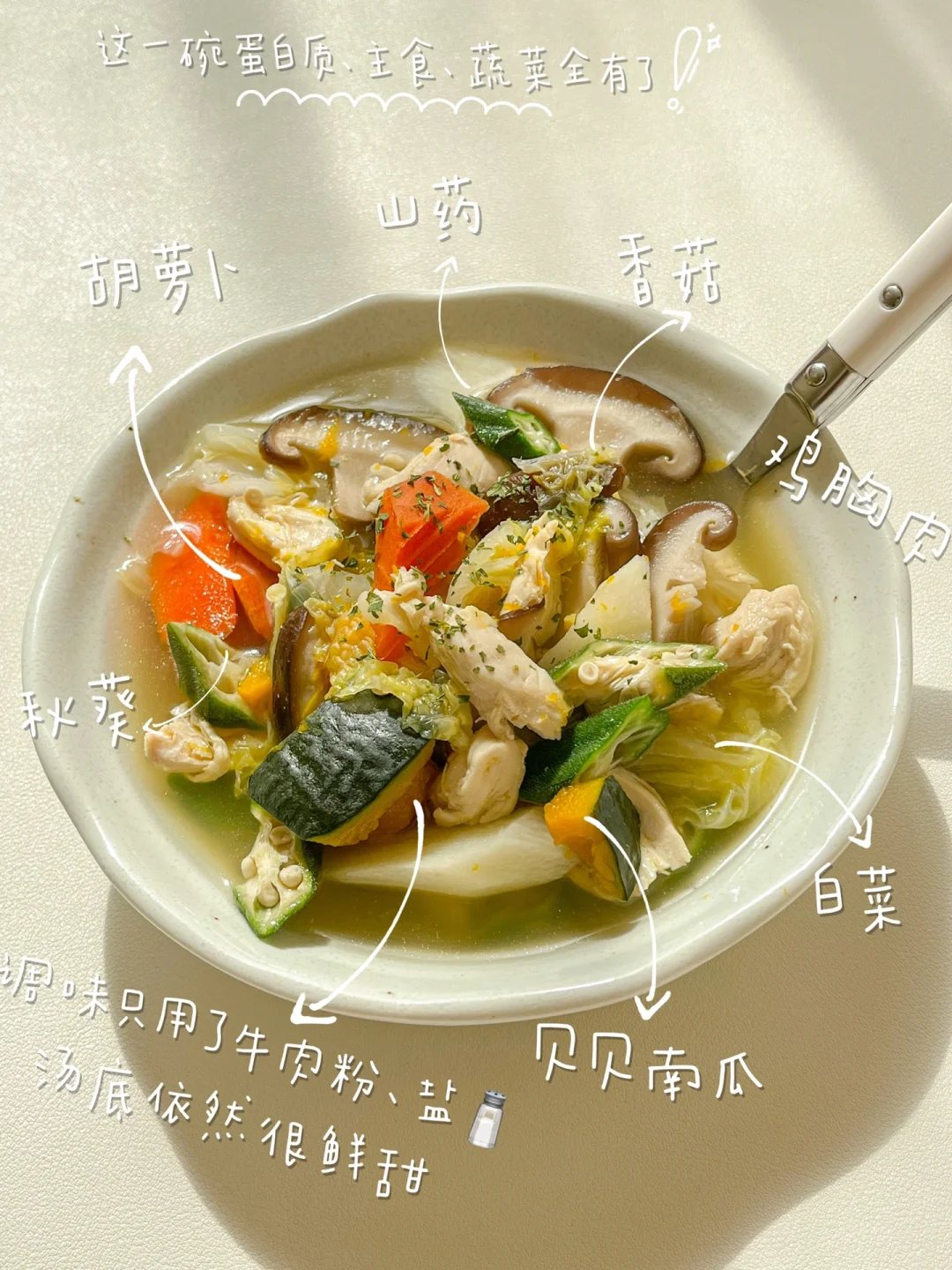 像我今天这餐汤里加了南瓜和山药