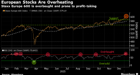 美国经济数据喜忧参半,加上地缘政治紧张局势加剧,导致欧洲股市从历史高位回落。今年年初,欧洲主要股指表现强劲,因为在美国袭击委内瑞拉后,投资者纷纷涌入国防和矿业股。
