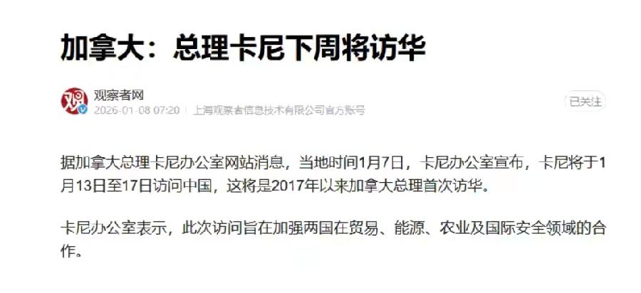 最近国际局势那叫一个风云变幻。七国联合对美国发出警告,结果特朗普根本不搭理,直接玩起了“倒反天罡”,转身退了66个国际组织。 加拿大更是耐人寻味,刚和其他六国联合警告美国,转头总理卡尼就宣布1月13 - 17日访华,这可是时隔近九年加拿大总理再次来中国。说是谈贸易、能源这些,实则是找靠山。之前它跟风美国打压中国,给自己整得很惨。中国反手对其油菜籽收高额保证金,让加拿大几万农民叫苦不迭。而美国不仅不帮忙,还对其钢铝加税。欧盟七国警告没用,加拿大只能急飞中国,欧盟也有“以华制美”的意思,不知道中国会不会接受它们的示好呢。