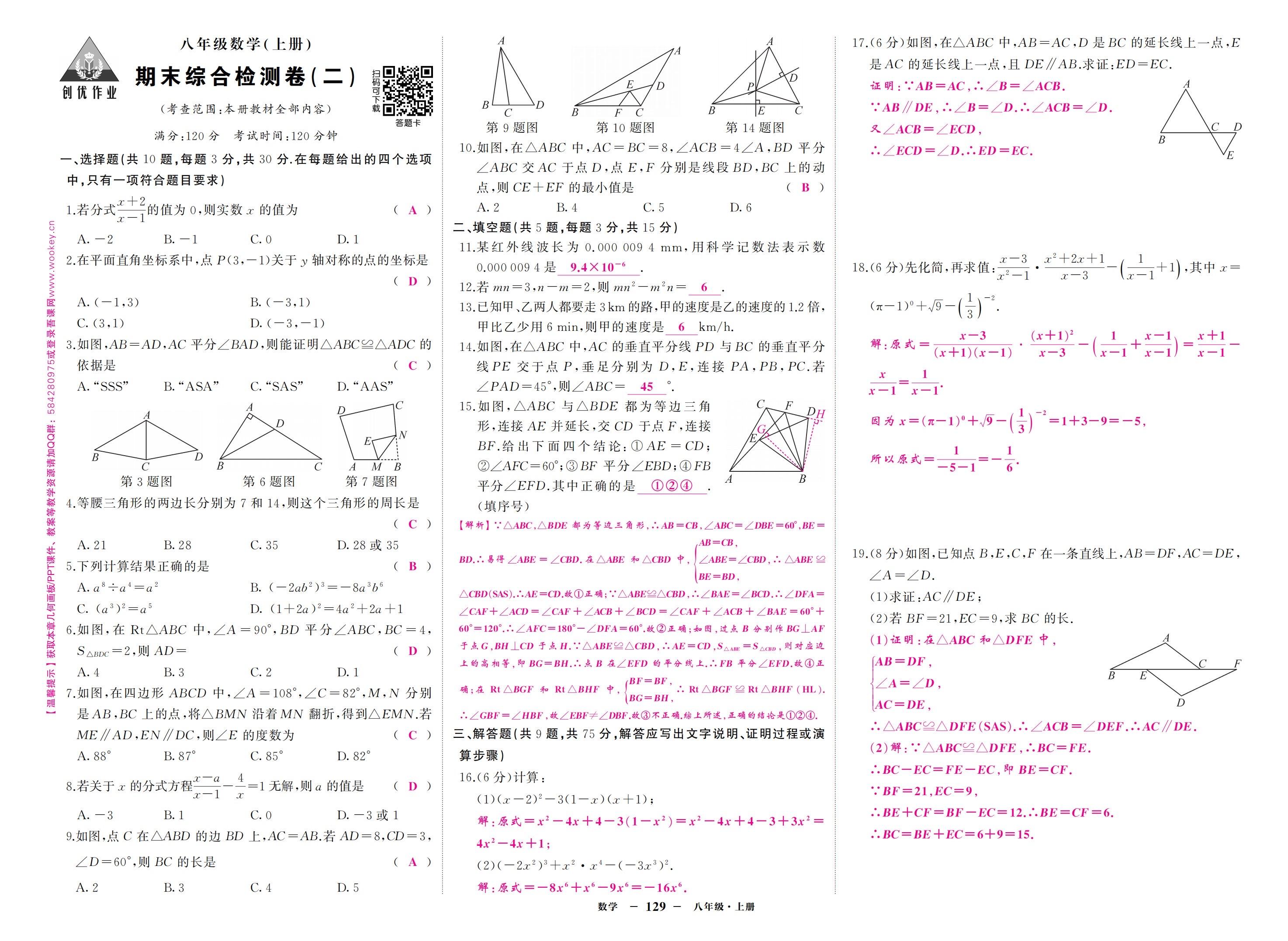 2026年八年级初二数学上册期末考测试卷。有需要可以左下角保存到手机相册打印,建议此份试卷用a3纸打印数学学习 人教版数学教材 永春县最便宜打印店 八方文印