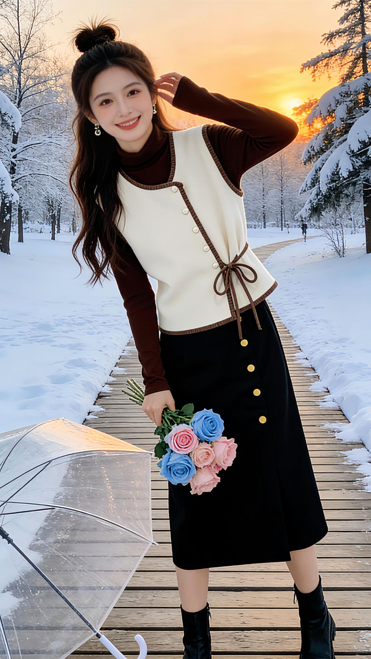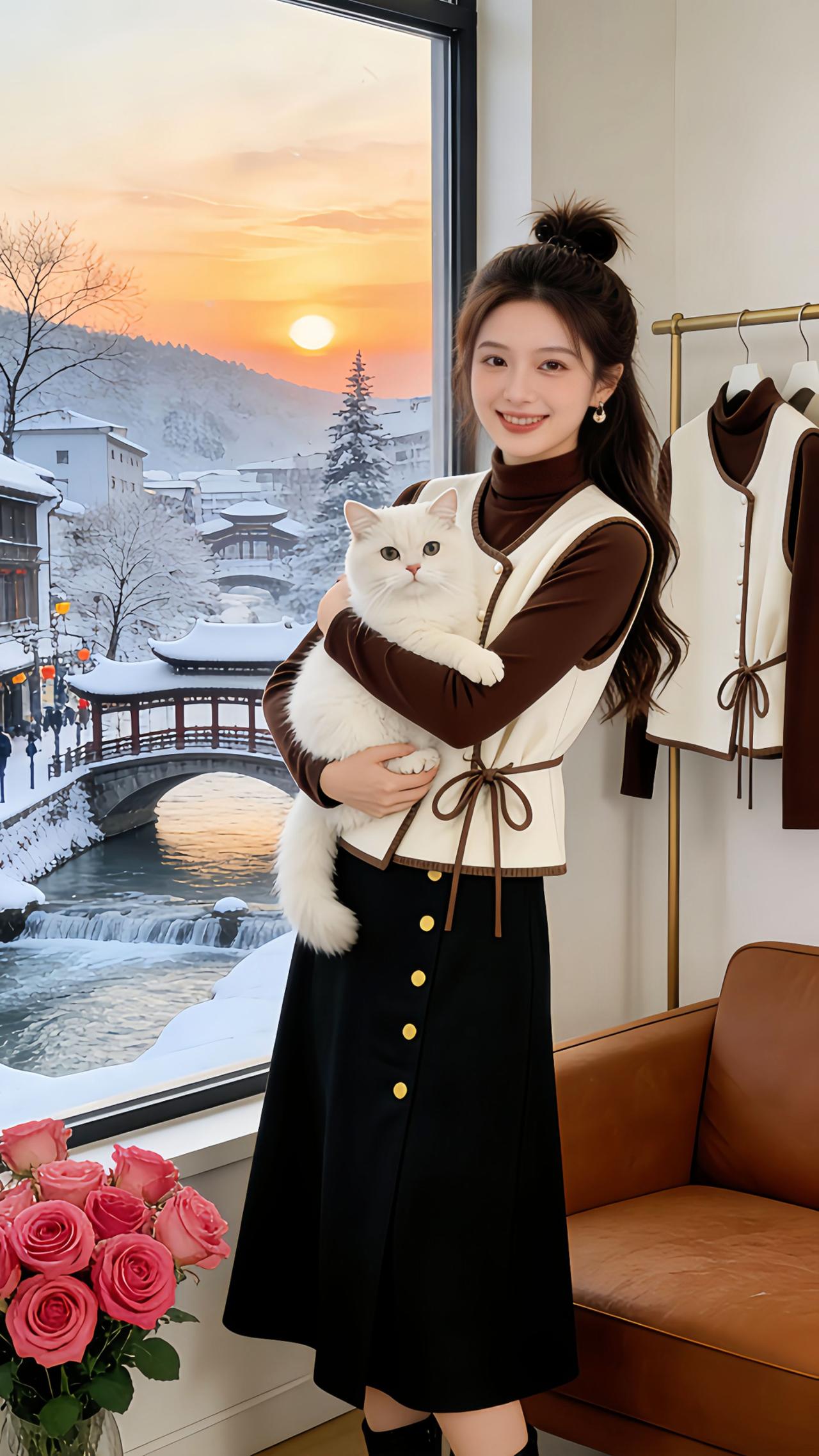 《Danny的冬日气质穿搭手记》 推开窗撞见冬日雪景的浪漫,Danny身着这款三件套站在木栈道上,手捧花束的模样揉碎了黄昏的温柔;室内抱猫时的慵懒、指向模特穿搭的认真,每一幕都把复古优雅的气质揉进了冬日里。 撞色拼接的设计勾勒出利落的身形线条,纽扣与系带的细节藏着满满的时髦感,上身尽显高级的穿搭品味。冬日搭一双短靴,不管是室内休闲还是出门赏雪,都能穿出独属于自己的气质范儿。 冬季最潮女装搭配 新年穿搭 秋冬韩系穿搭还得看我的 冬日穿搭一周不重样 新年战袍准备好了吗 @抖加🔥上热门🔥dou+🔥热点宝 @图文带货帮扶中心