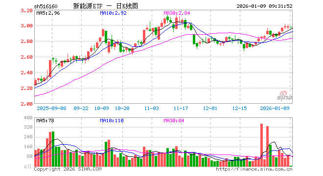 1月9日,新能源ETF(516160)开盘跌0.13%,报2.978元。新能源ETF(516160)重仓股方面,宁德时代开盘跌0.01%,阳光电源跌0.92%,亿纬锂能涨0.00%,隆基绿能跌0.85%,华友钴业跌1.48%,特变电工跌0.08%,中国核电涨0.00%,赣锋锂业跌0.80%,先导智能跌0.02%,三峡能源涨0.00%。
