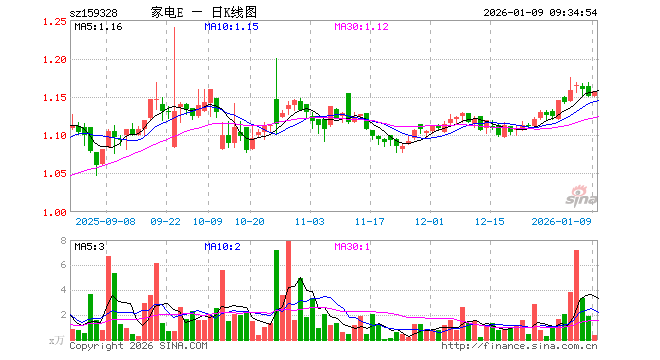 1月9日,家电ETF易方达(159328)开盘涨0.00%,报1.150元。家电ETF易方达(159328)重仓股方面,三花智控开盘跌0.29%,美的集团涨0.72%,海尔智家涨0.27%,格力电器跌0.02%,石头科技涨0.00%,麦格米特涨0.02%,四川长虹跌0.21%,科沃斯涨0.24%,海信视像涨0.08%,兆驰股份涨0.00%。