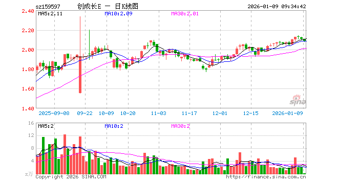 1月9日,创业板成长ETF易方达(159597)开盘涨0.00%,报2.107元。创业板成长ETF易方达(159597)重仓股方面,宁德时代开盘跌0.01%,新易盛跌3.25%,中际旭创跌3.28%,阳光电源跌0.92%,胜宏科技跌1.59%,东方财富涨0.00%,汇川技术跌0.15%,迈瑞医疗涨0.14%,亿纬锂能涨0.00%,长川科技跌2.15%。