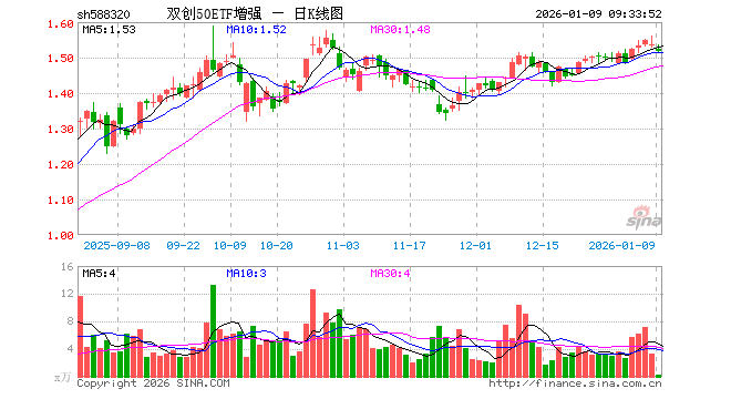 双创50ETF增强(588320)业绩比较基准为同期中证科创创业50指数收益率,管理人为广发基金管理有限公司,基金经理为胡骏,成立(2022-12-28)以来回报为53.96%,近一个月回报为3.40%。