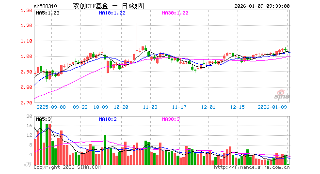 1月9日,双创ETF基金(588310)开盘跌0.96%,报1.027元。双创ETF基金(588310)重仓股方面,宁德时代开盘跌0.01%,新易盛跌3.25%,中际旭创跌3.28%,中芯国际跌0.77%,寒武纪跌1.66%,海光信息跌1.52%,阳光电源跌0.92%,澜起科技跌0.82%,胜宏科技跌1.59%,汇川技术跌0.15%。