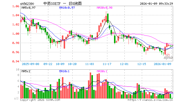 1月9日,中药50ETF(562390)开盘跌0.10%,报0.973元。中药50ETF(562390)重仓股方面,云南白药开盘跌0.05%,片仔癀涨0.00%,同仁堂跌0.03%,东阿阿胶涨0.00%,吉林敖东跌0.05%,华润三九跌0.34%,白云山涨0.28%,以岭药业涨0.00%,佐力药业涨0.36%,达仁堂跌0.04%。