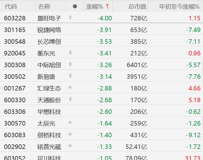 A股CPO概念股普跌,新易盛跌超3%