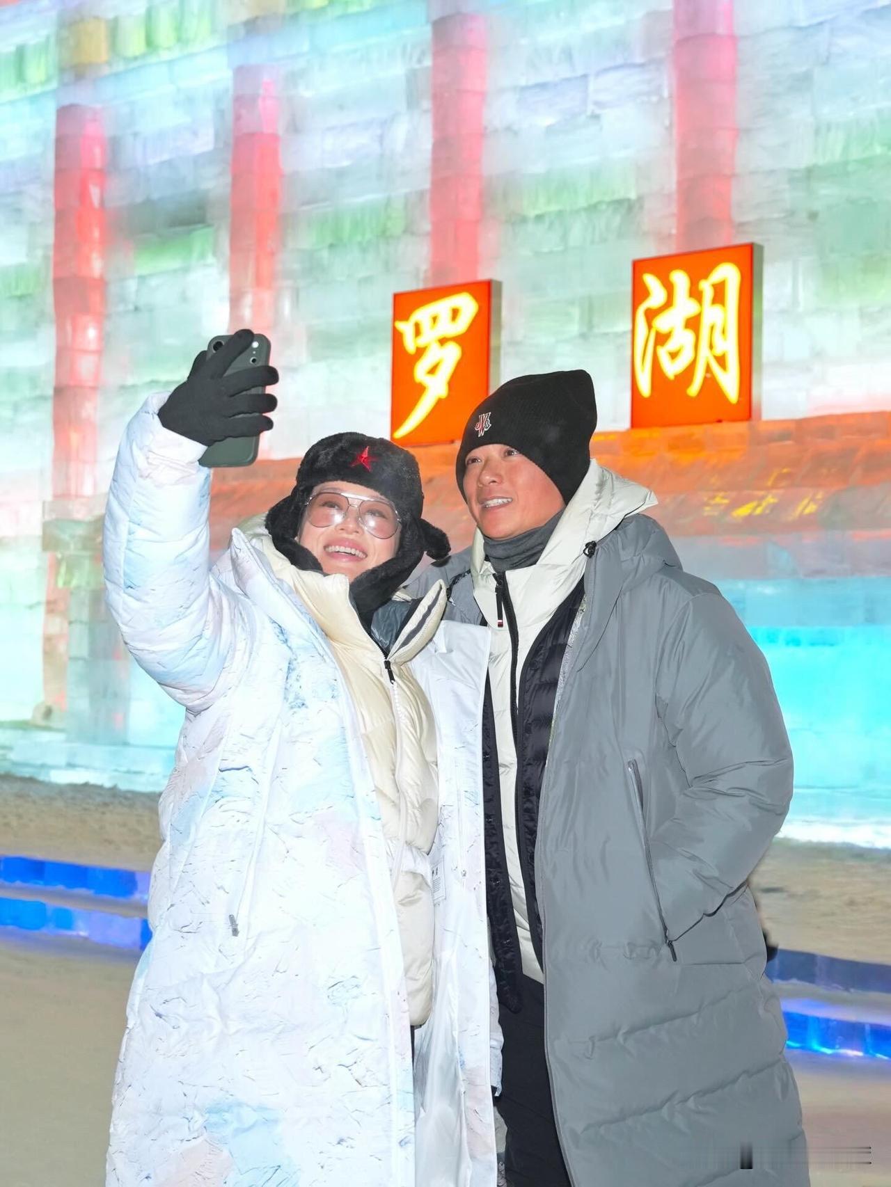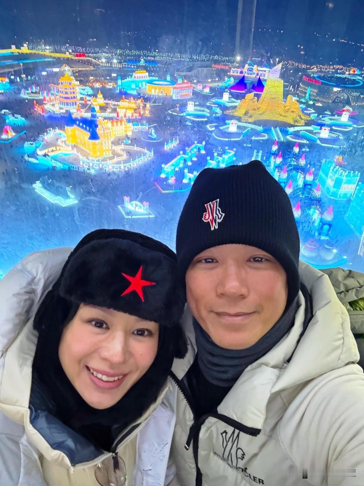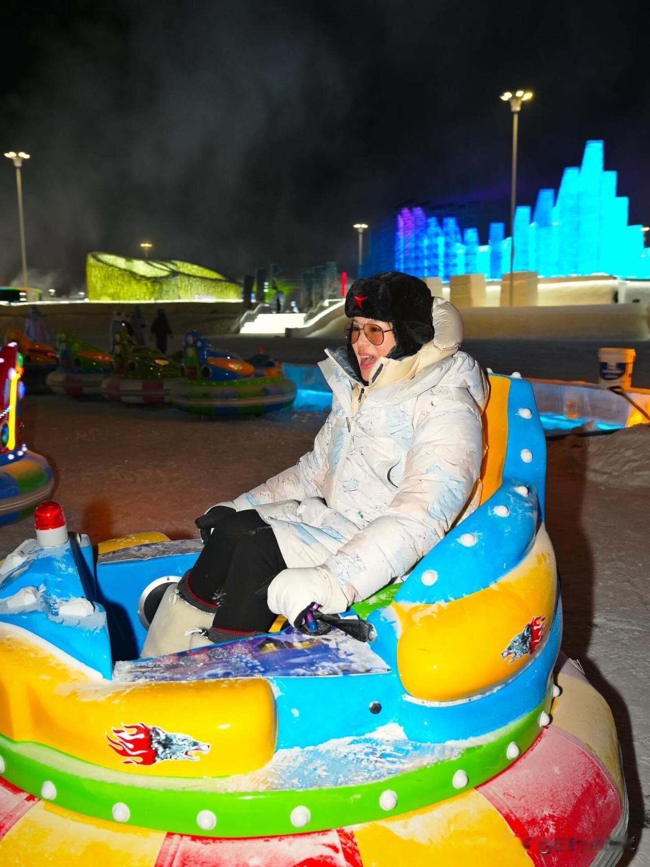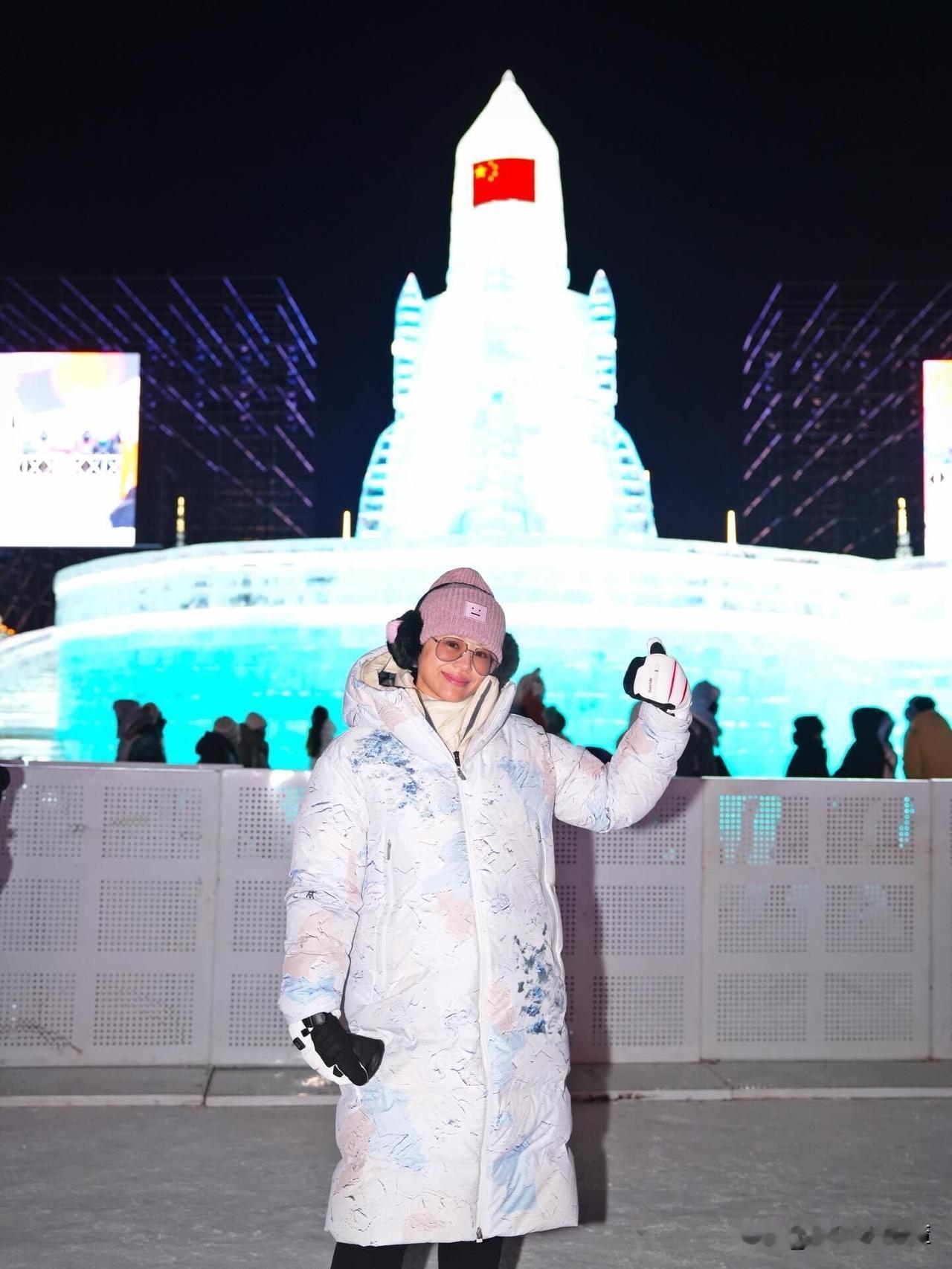 胡杏儿这一身可以说给想去冰雪大世界玩的人打了个样板,来哈尔滨就是要穿这么多。