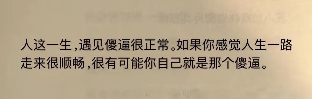 人这一生,遇见傻逼很正常。如果你感觉人生一路走来很顺畅,很有可能你自己就是那个傻逼。