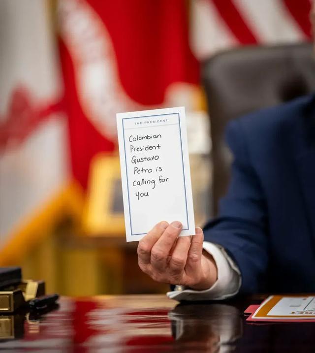 过去几天里,特朗普一直释放出信号,暗示他在考虑对哥伦比亚采取军事行动。此前他指控佩特罗是“一个病态的人,喜欢制造可卡因并卖到美国”。通话结束后,鲁比奥和万斯离开了房间。特朗普随即口述了一条要发在社交平台“真实社交”上的帖子,让助手娜塔莉·哈普记录下来:“我感谢他(佩特罗)的来电和语气,并期待在不久的将来与他会面。”