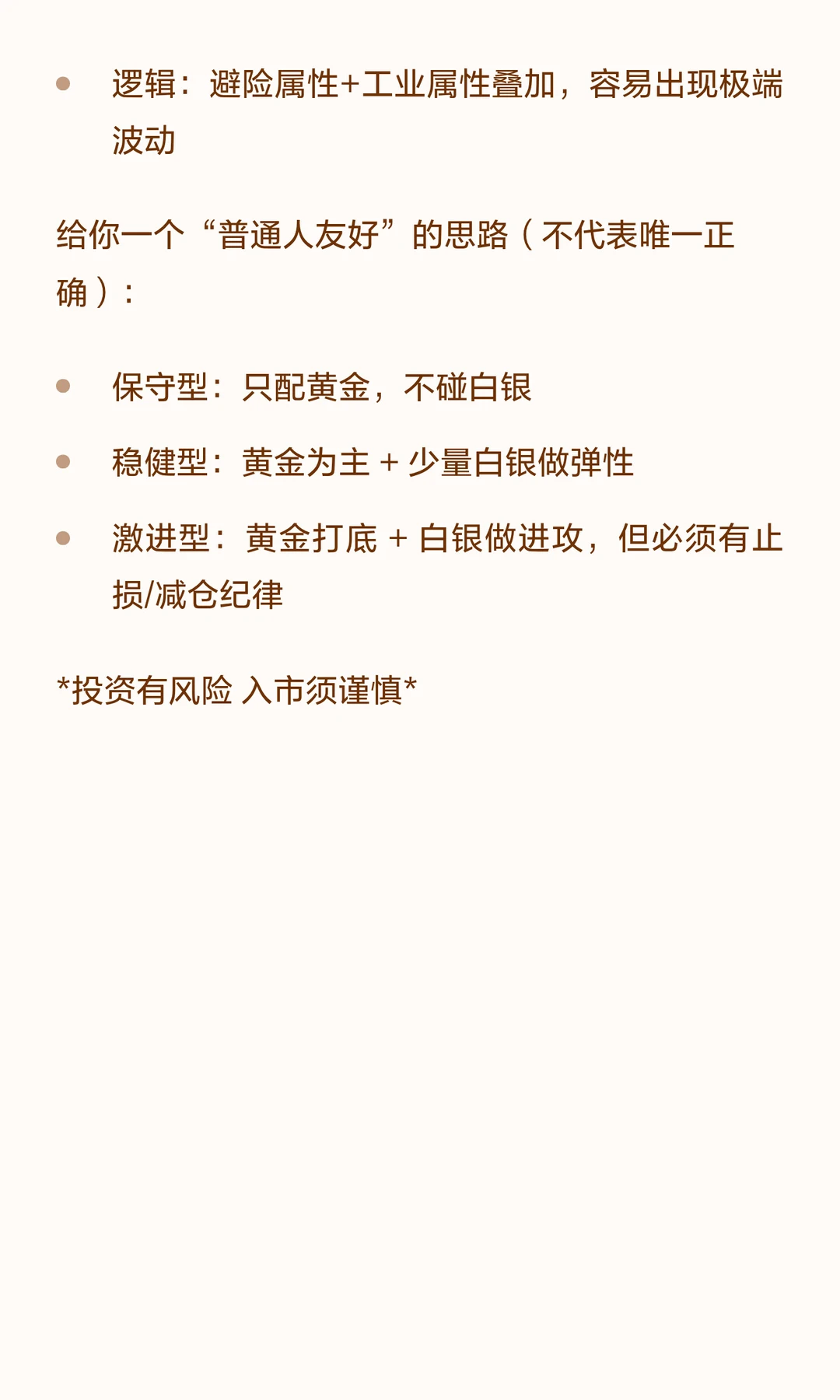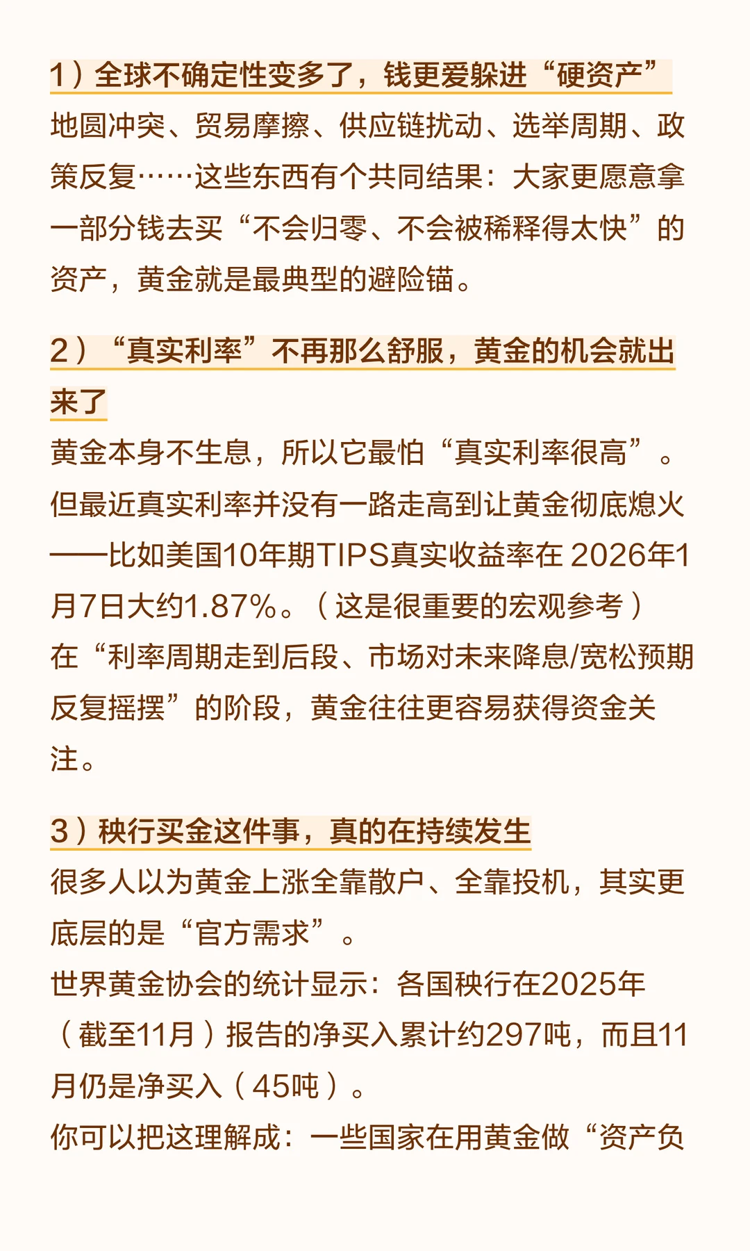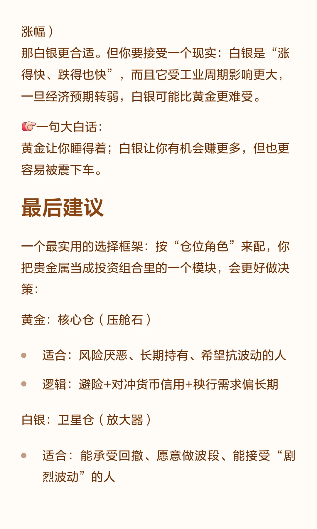 这一轮黄金、白银的上涨,已经从“悄悄走强”变成了“人人都在讨论”。价格不断刷新高点,有人开始后悔没早点买,也有人开始犹豫:现在还追得动吗?黄金和白银到底谁更值得上车? 这篇笔记不讲情绪、不喊口号,从宏观逻辑和普通人的实际选择出发,把这轮行情背后的原因和更理性的买法一次讲清楚。