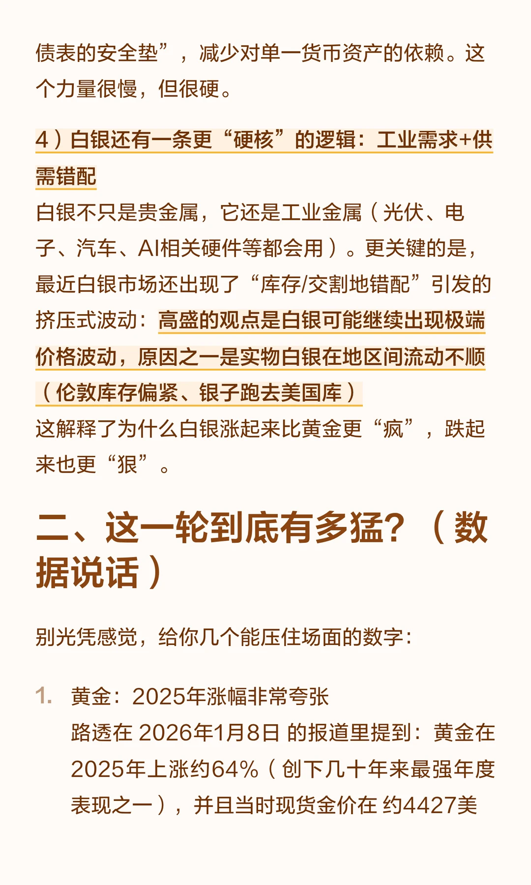 今年黄金白银大概率继续涨,但难有去年那样的猛劲。别劝身边人买,下面说透逻辑、关键