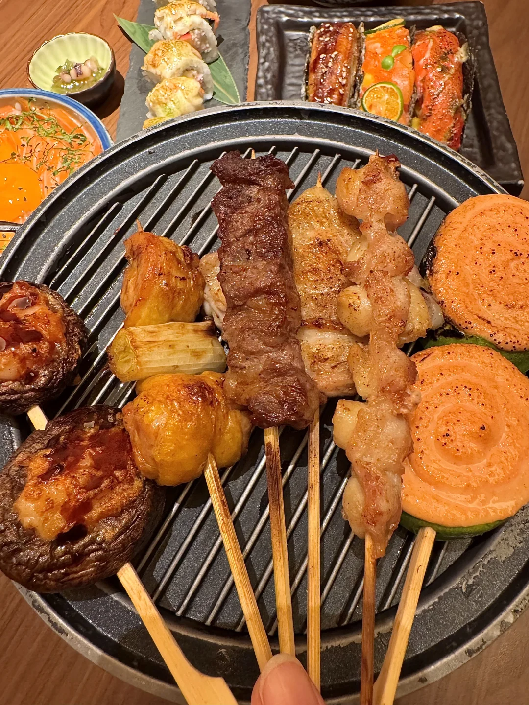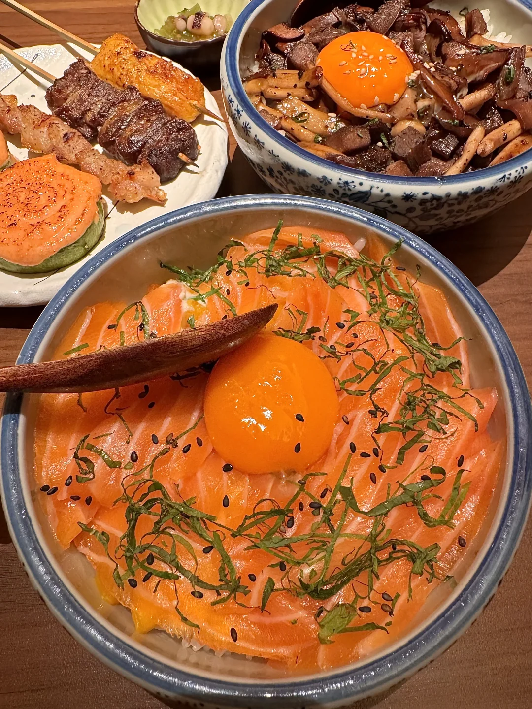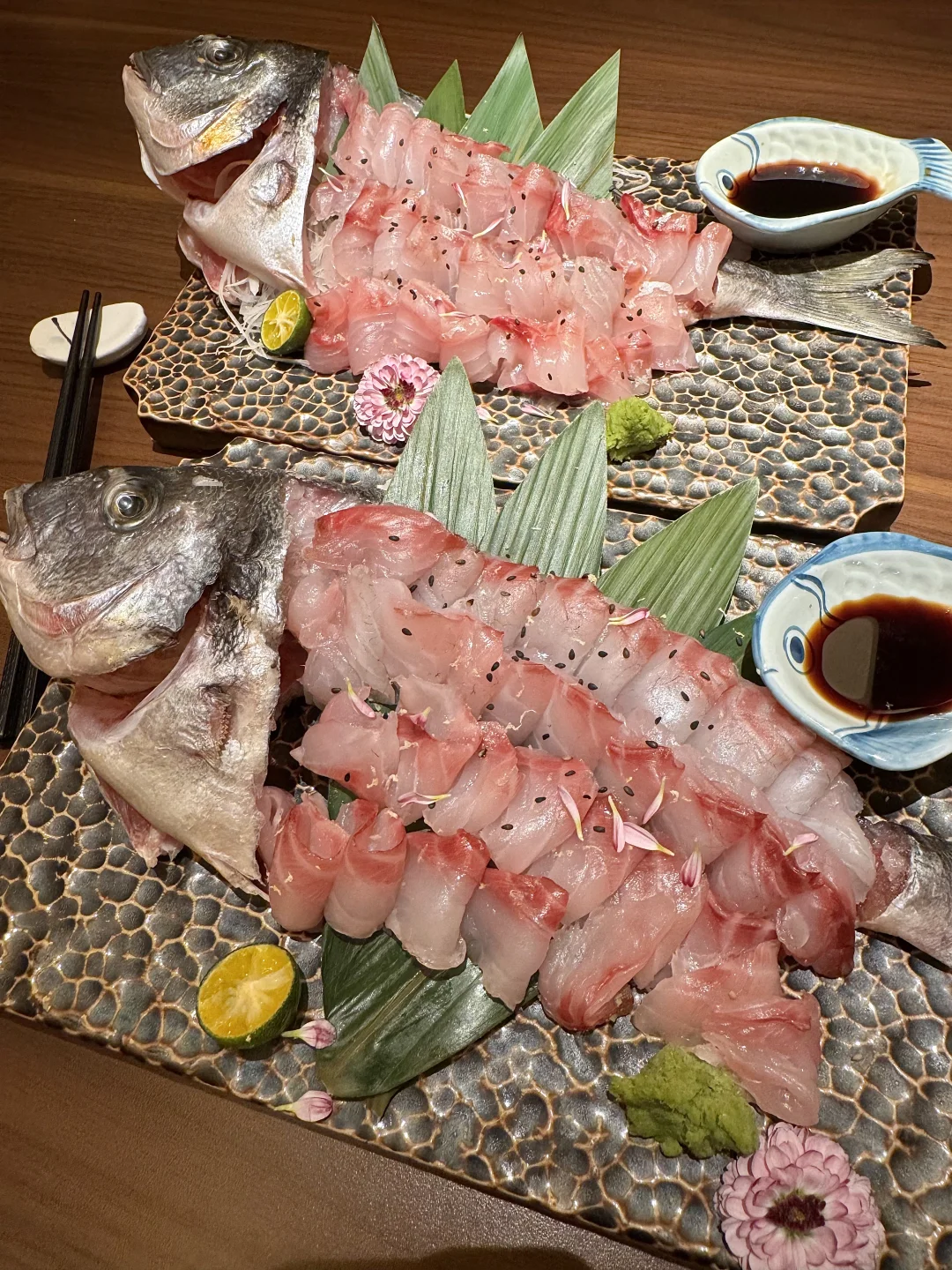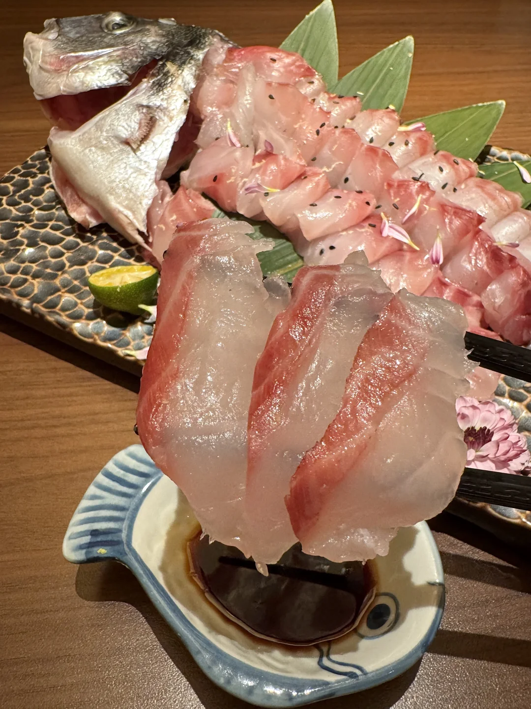 国大之神!!杭州吃过不下5次以上的店! 叫:七条鱼)好适合一二人食! 熟成鲷鱼刺身!好好吃😭油脂丰厚,蘸点芥末酱油入口弹糯弹糯的,越嚼越鲜真的一口惊艳!还有三文鱼拌饭、塔塔酱拌炸虾、抹茶布丁…值得带嫡长闺来反复n刷!!