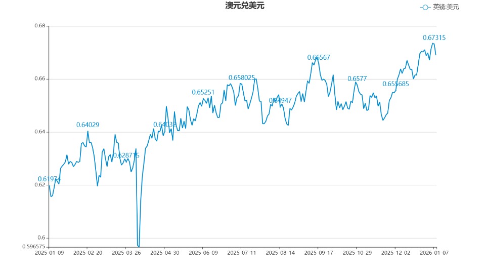 新华财经悉尼1月9日电(记者李晓渝)2025年,澳元兑美元汇率在国内外多重因素交织影响下,整体呈现“先抑后扬、中枢上移”的运行特征。尽管年内经历阶段性回调,但汇率随后逐步企稳并持续回升,至年末运行区间明显高于年初水平,展现出作为典型商品货币的周期性韧性。
