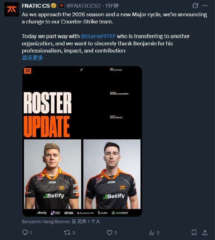 Fnatic正式与blameF分道扬镳,黑山枪男maden加盟