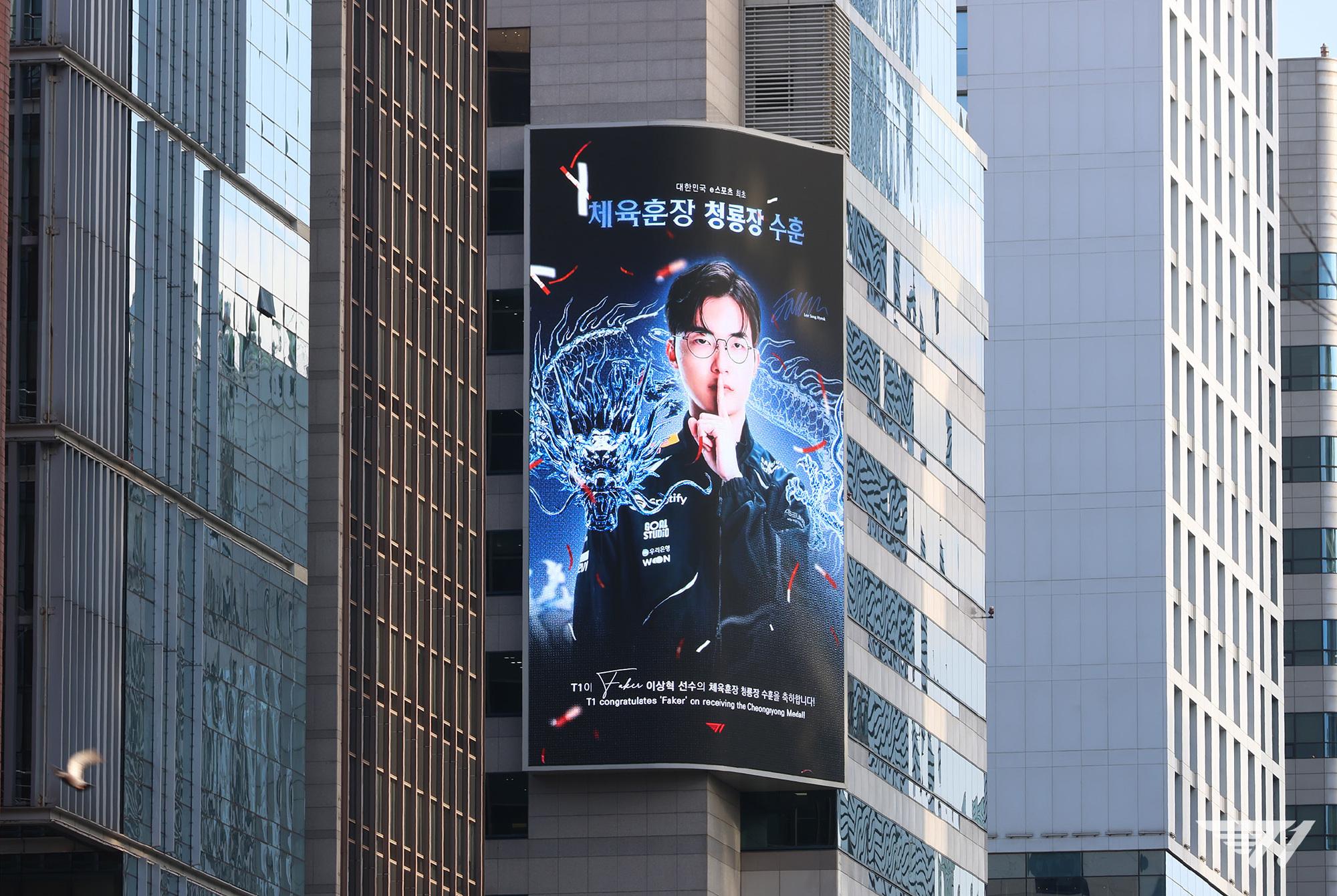 T1分享庆祝Faker荣获青龙章户外大屏:首尔各地都可以看见