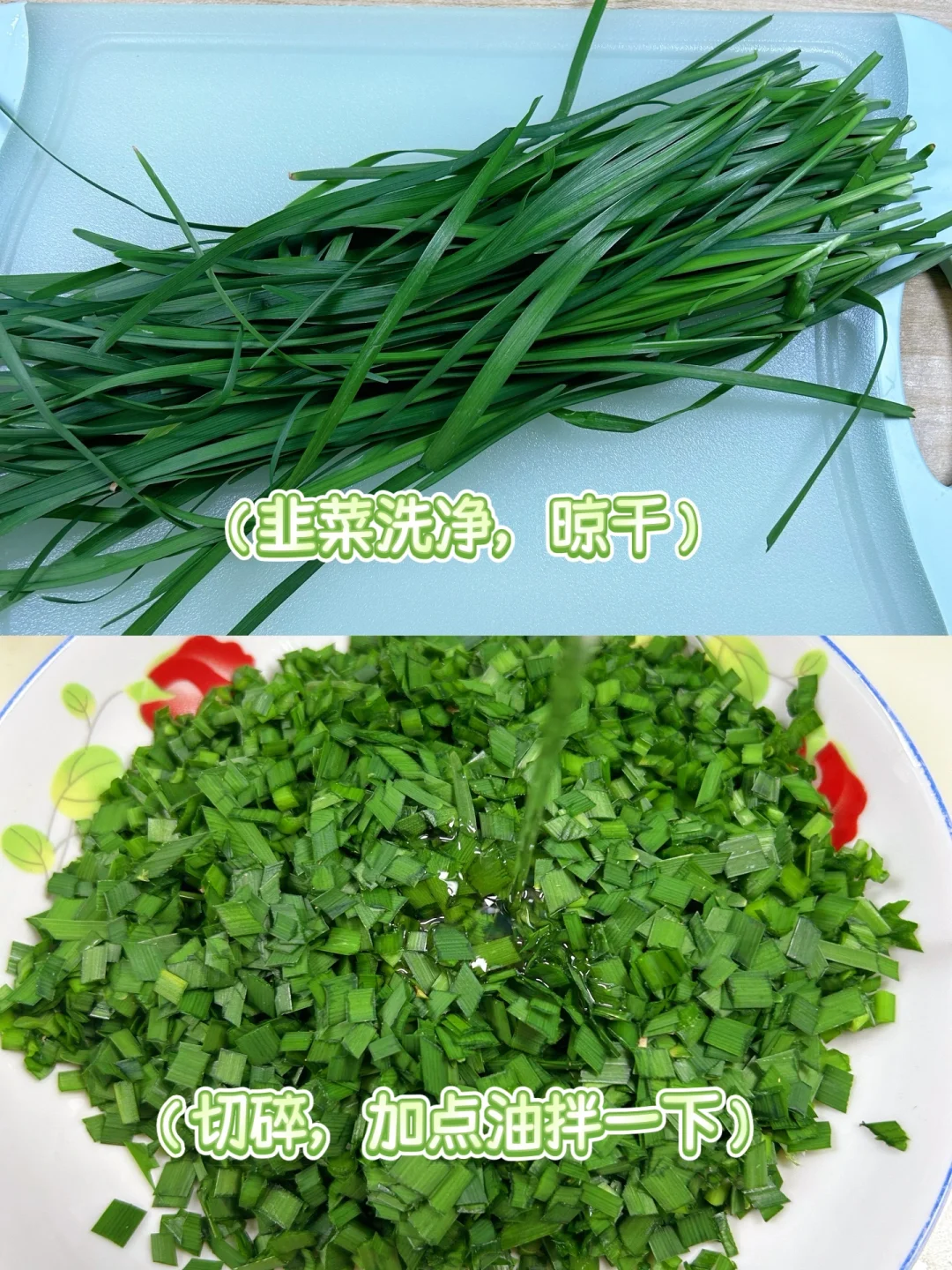 用鲜嫩韭菜做韭菜盒子,包成春卷的样子