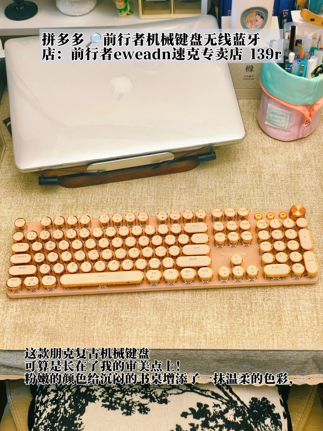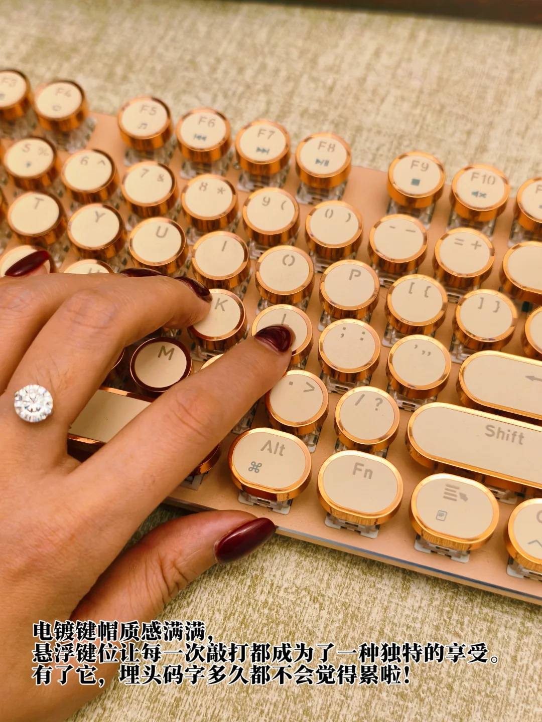 这款朋克复古机械键盘可算是长在了我的审美点上!粉嫩的颜色给沉闷的书桌增添了一抹温柔的色彩,电镀键帽质感满满,悬浮键位让每一次敲打都成为了一种独特的享受。有了它,埋头码字多久都不会觉得累啦!