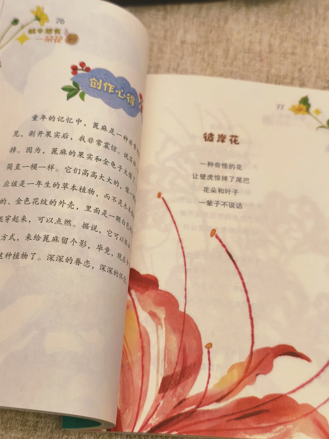 💛而安武林《蜗牛想有一朵花》中,那只执着的小蜗牛,则是让孩子懂得“慢”的哲学:“妈妈,它像不像坚持修渠的八路军?”他联想到《彩石山》里“将军渠”故事的那一刻,我才恍然,原来童诗里的坚韧,与红色血脉悄然相通。