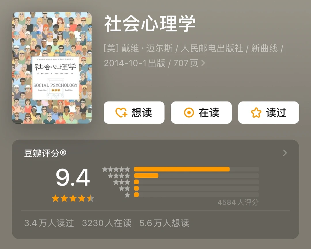 ✨这本书是美国700多所大专院校社会心理学教学所用的教材,被翻译成多种语言,有着广泛的影响力。书中的一句话让我印象深刻:一旦思维得以拓展,思想就再也回不到原来狭小的领域了,这种片刻的精神愉悦和自我满足的膨胀感显而易见。