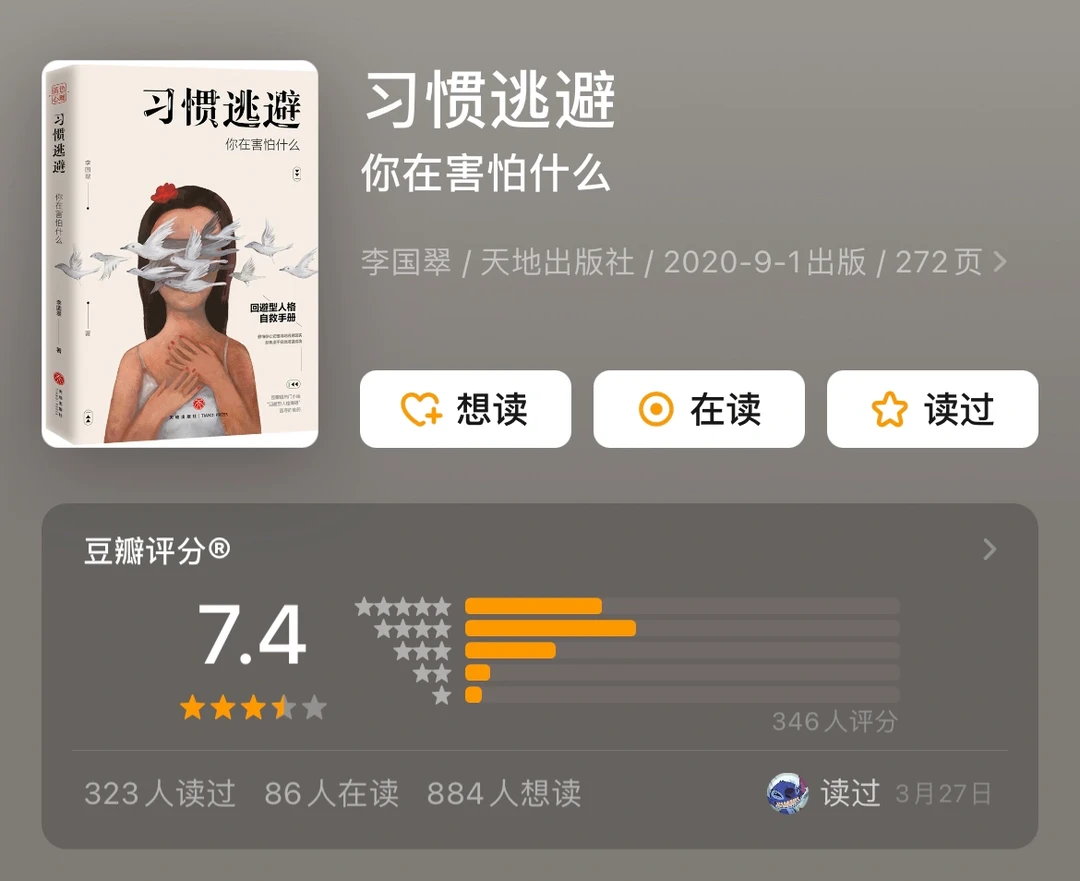 ✨习惯逃避的你必须明白:麻烦不会因为你暂时逃避而凭空消失,只有学会勇敢面对,才能走向明亮的人生。这本书从“逃避心理”的角度入手,找出我们在生活中习惯逃避的原因,让受困于逃避心理的人们,重拾自信,找到直面人生的勇气。