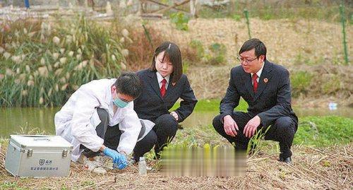 近日,贵州省江口县检察院检察官对养殖场整改情况进行回访。图为第三方技术人员对整改后的水产养殖场水质的化学和生物指标进行检测。