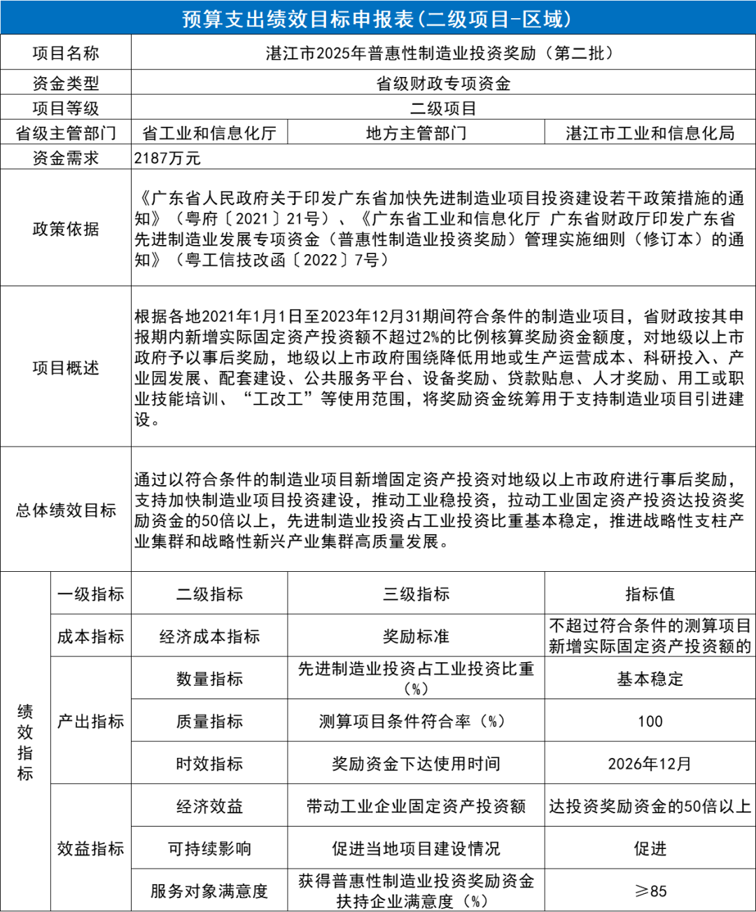 《2025年广东省制造业当家重点任务保障专项普惠性制造业投资奖励资金(第二批)项目计划》