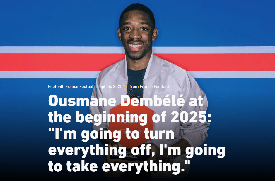 虎扑01月10日讯法国媒体队报撰写登贝莱2025年总结专栏。