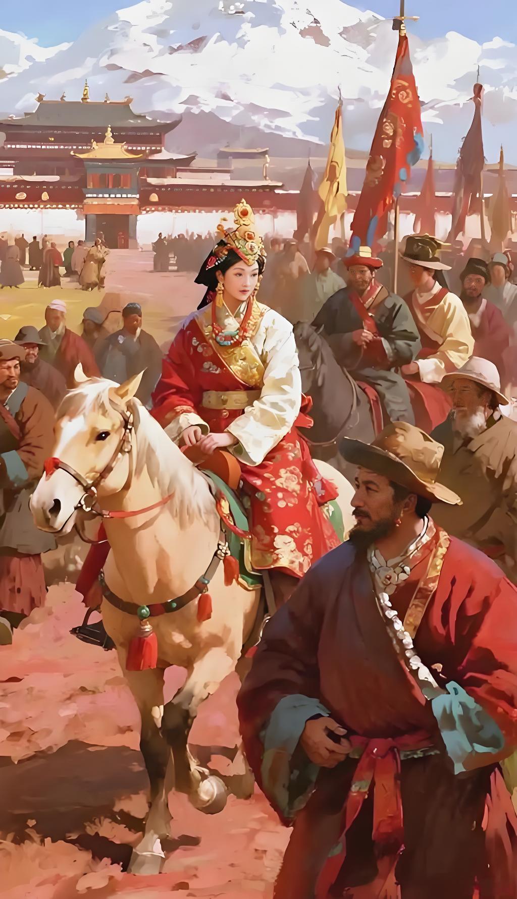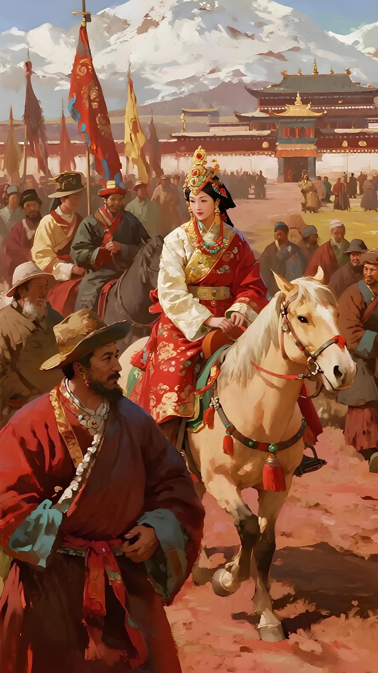 大家好,我是你们的历史科普博主。今天带大家走进一段波澜壮阔、充满传奇色彩的历史故事——文成公主入藏,开启汉藏友谊的辉煌篇章。 公元618年,唐朝的李世民登基称帝,开启了盛世唐朝的辉煌时期。而文成公主,原名李瑶,自幼聪明伶俐,深得唐太宗李世民的宠爱。她不仅以才貌双全著称,更以智慧和勇气赢得了后世的敬仰。历史 公元641年,为巩固唐朝与吐蕃(今西藏地区)的友好关系,唐太宗决定以联姻的方式加强两国的联系。于是,文成公主被选中作为“和亲”的使者,远嫁吐蕃赞普松赞干布,成为“吐蕃王后”。 这不仅是一场政治联姻,更是一座文化交流的桥梁。文成公主带去了中原的先进文化、农业技术和佛教思想,为吐蕃带来了深远影响。 公元640年,文成公主踏上了艰难的入藏之旅。她穿越千山万水,历经风雨,带着唐朝的礼物和文化,使者般地融入到吐蕃的土地上。一路上,她不仅要面对复杂的地理环境,更要适应异域的风俗习惯。 文成公主入藏后,带来了大量的汉文化、佛教经典和农业技术。她在吐蕃推广汉族的农业灌溉技术,传授汉字和礼仪,促进了汉藏文化的融合。 更重要的是,她的到来推动了佛教在藏区的传播,成为藏传佛教的重要奠基人之一。她的影响深远,成为汉藏友谊的象征。 文成公主入藏不仅是一场政治联姻,更是一段跨越民族和文化的交流史诗。她用智慧和勇气架起了一座友谊的桥梁,让汉藏两地在文化、宗教和政治上实现了深度融合。 今天,文成公主的故事依然激励着我们:在多元文化的交流中,理解与包容才是最坚固的纽带。 历史长河中,像文成公主这样具有远见和勇气的女性,值得我们永远铭记。她用行动证明了,文化的交流与融合,是推动人类文明进步的重要力量。