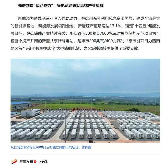从云南日报、楚雄发布等当地媒体对区域储能项目的跟踪报道中了解到,2025年远信储能在云南有多个重点项目实现并网,总规模达1.5GWh,覆盖共享储能、智慧储能、构网型储能等多个细分领域: