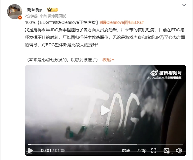 经纪人爆料:EDG主教练Clearlove正在连接!100%!
