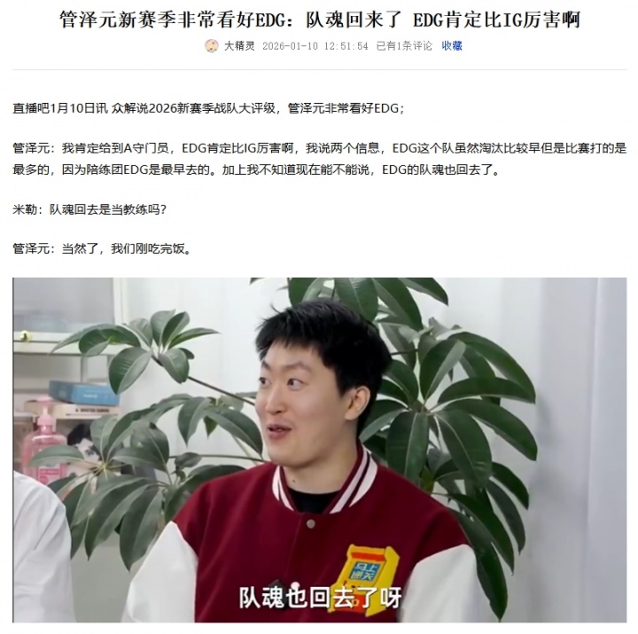 管泽元在今天发布的LPL战队评级视频中,也曾谈到此事
