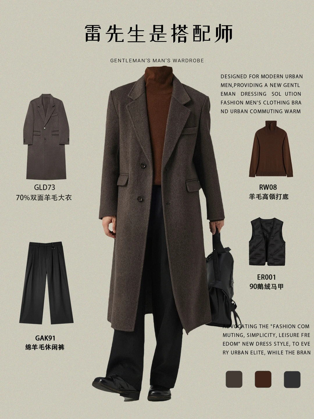 用颜色表达情绪:黑(权威)、灰(理性)、棕(温暖),三大基础色足以构建一个高级的冬季衣橱。