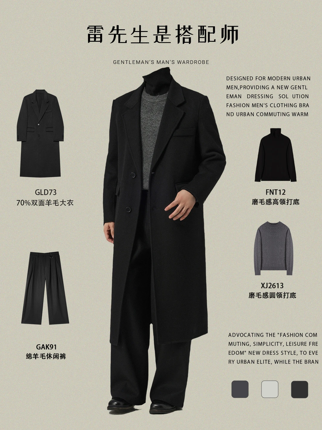 过了三十岁才发现 一个体面的男人 冬天只需要三件大衣 就足以在所有的场合里 穿得从容、得体、有分量
