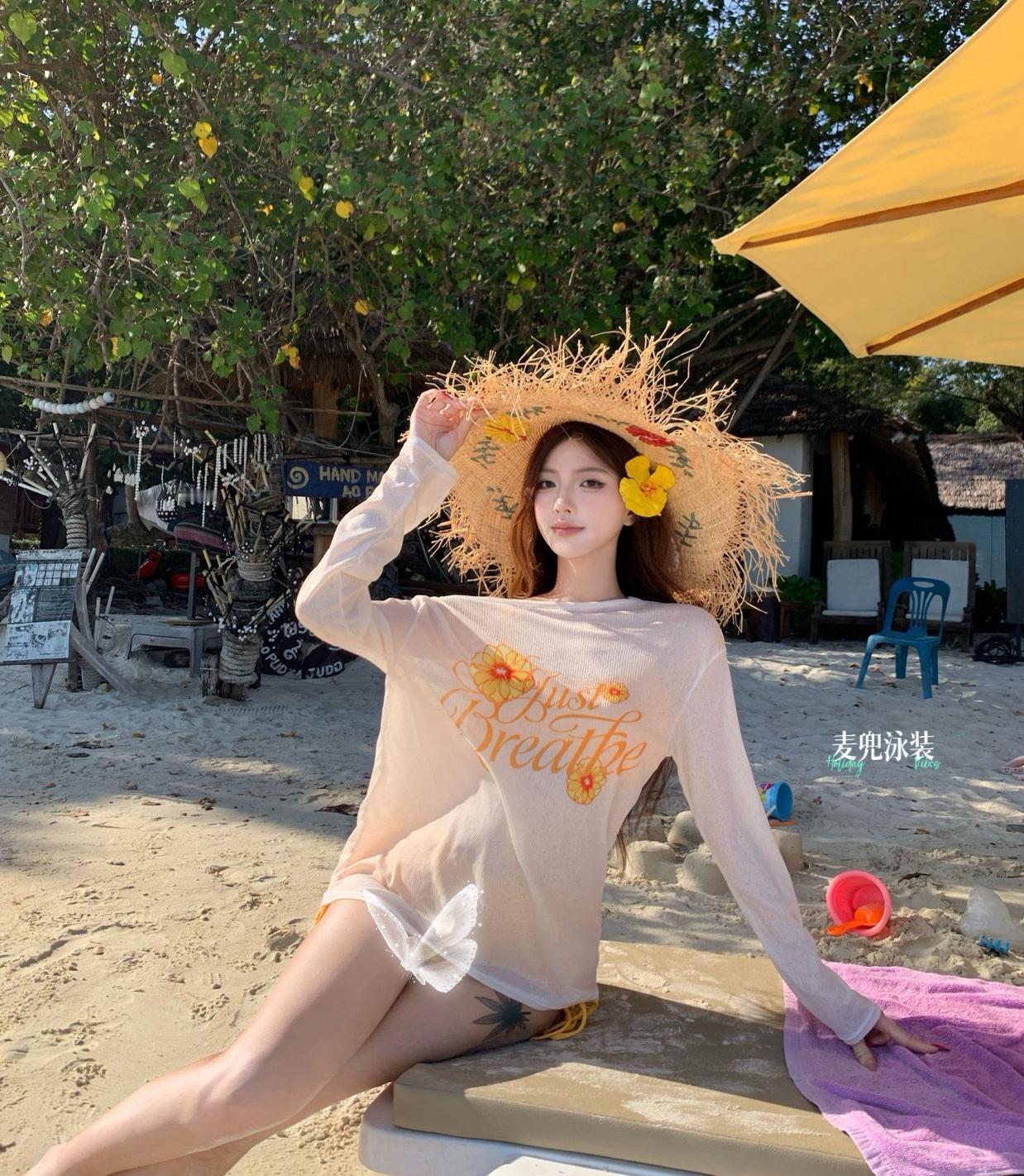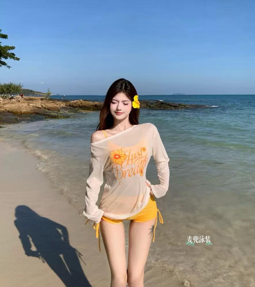 海边C位泳衣💛防晒罩衫氛围感拉满去海南旅游,有没有防晒霜推荐 分享一张海边照 能否分享一下你喜欢的海滩照片 泳衣 比基尼