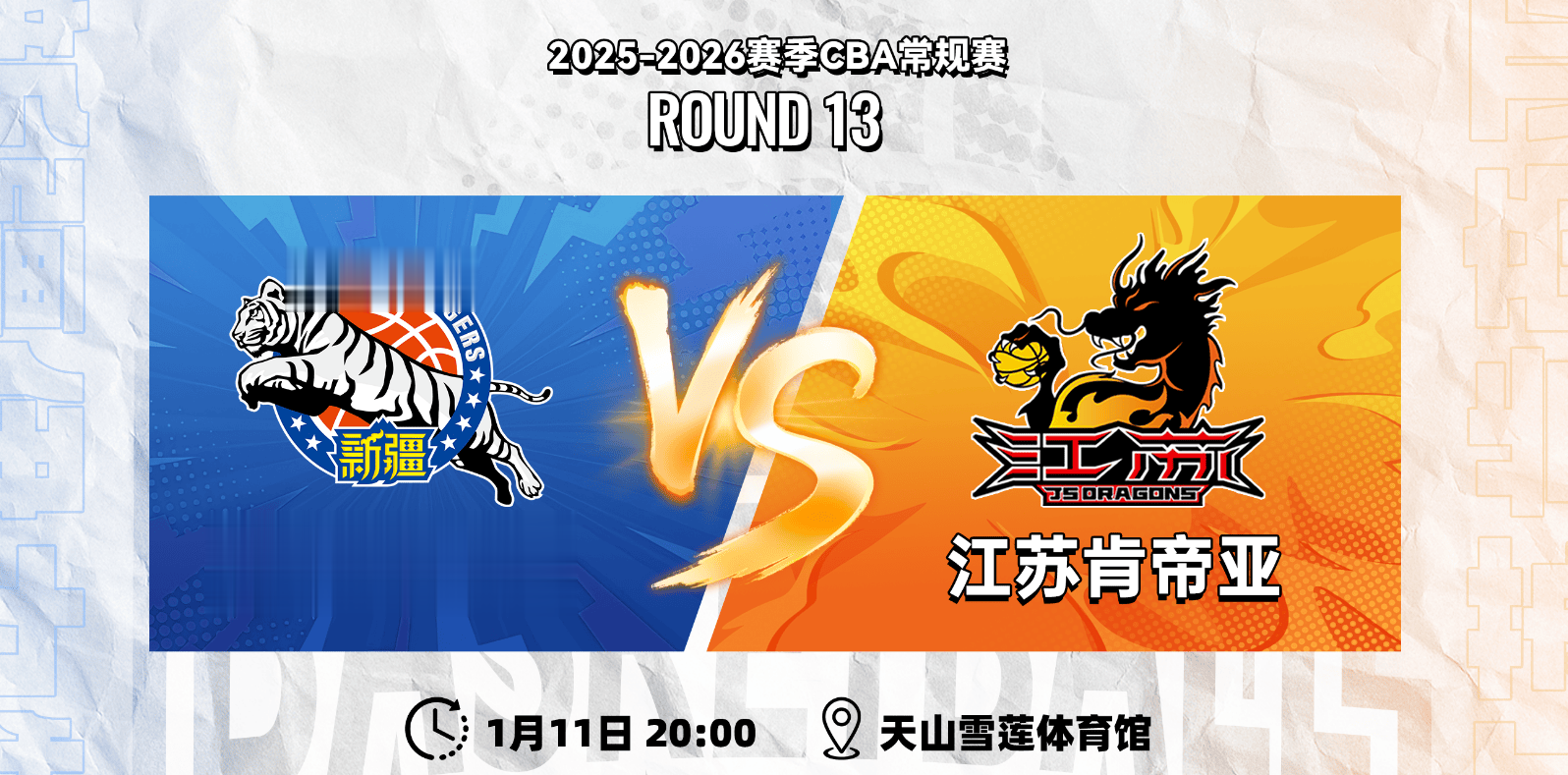 虎扑01月10日讯明日CBA常规赛:江苏男篮将对阵新疆男篮。