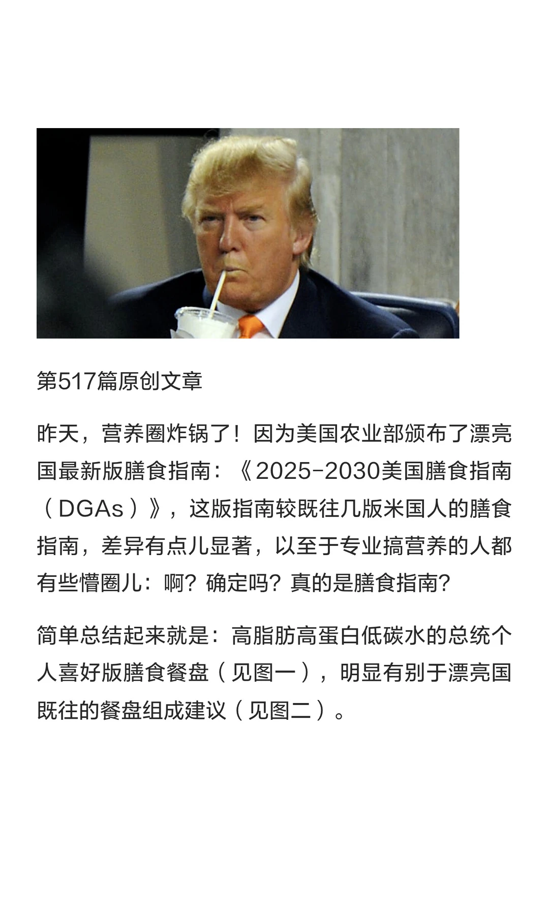 在特朗普指导下出的这份“特氏营养圣经”,和以前画风彻底颠倒了!核心就仨词:狂吃肉!猛吃油!饭少吃!
