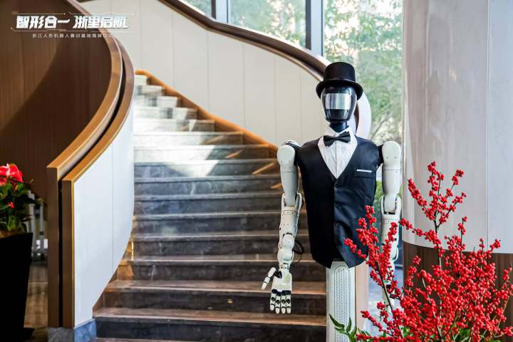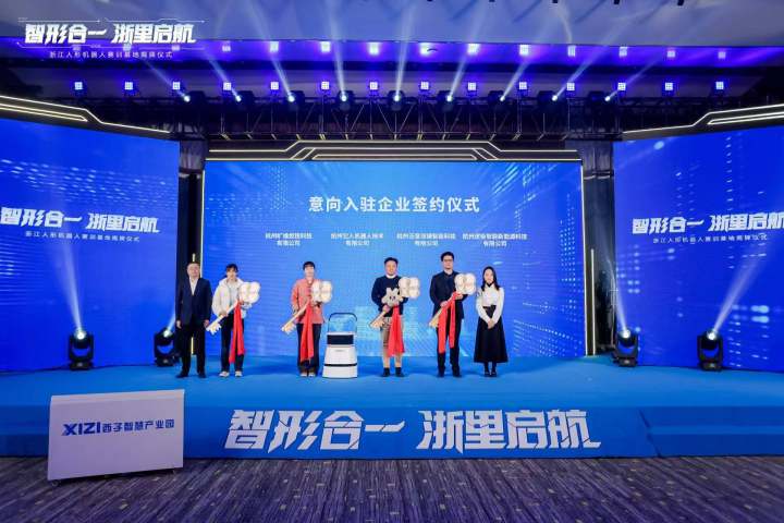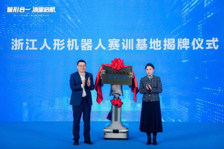 浙江人形机器人赛训基地,在上城区丁兰街道西子智慧产业园正式揭牌。