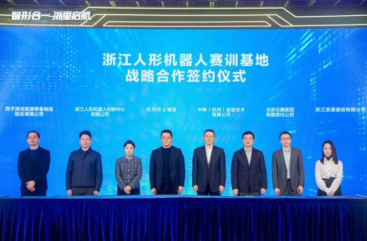 浙江人形机器人赛训基地由杭州市上城区携手北京北奥集团、中移杭州、浙江人形、浪潮通信、西子洁能共同打造而成,覆盖了从核心技术研发、算力支撑到通信保障的完整链条。