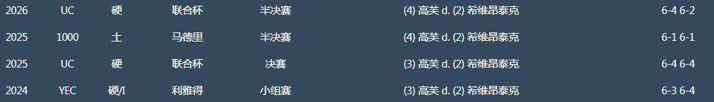 值得一提的是,2024年年终总决赛之前,高芙与斯瓦泰克交手11次仅取得1胜,并遭遇了一波7连败和一波4连败。