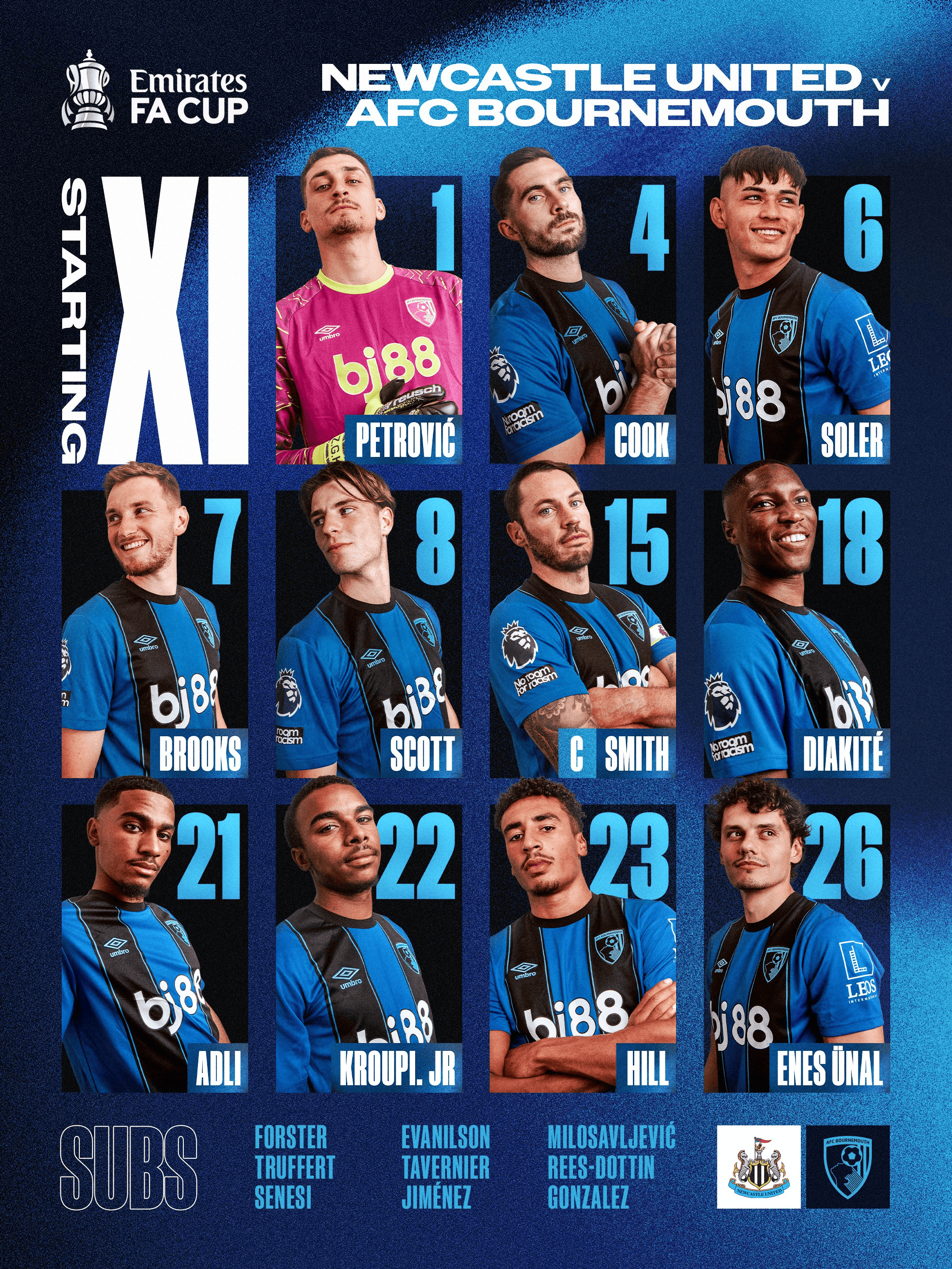 虎扑01月10日讯英格兰足总杯第三轮,纽卡斯尔联坐镇主场迎战伯恩茅斯。赛前,双方公布了首发阵容。