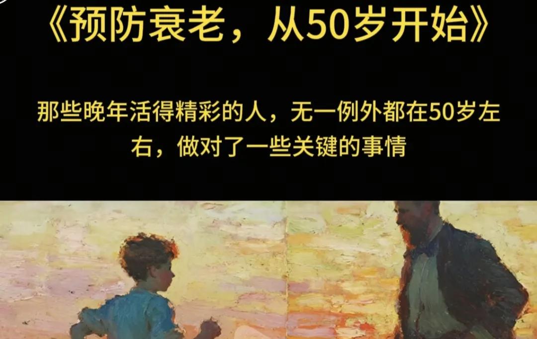 《预防衰老,从50岁开始》这本说研究了大量的数据,发现一个惊人的规律:那些晚年活得精彩的人,无一例外都在50岁左右,做对了一些关键的事情。究竟哪些是关键的事情呢?提炼一下以下要点供参考: 首先,主动投资与维护身体资本,从单纯消耗卡路里,转向力量训练(预防肌肉流失,维持代谢与行动能力)、平衡训练和中等强度有氧(维护心肺功能)的组合,真正把运动融入了生活,就像吃饭睡觉一样的必需品,成为工作与生活不可缺少的每日行动之习惯。 其次,注重营养均衡提高蛋白质摄入,关注补充关键营养素,有意识地补充钙、维生素D(骨骼健康)和膳食纤维(肠道健康),大幅减少高糖、深加工食品,增加全谷物、蔬菜水果和健康脂肪的摄入,从根源上降低慢性炎症(衰老的加速器)。 第三,主动学习接受新挑战,让自己有事情做而且富有意义。同时通过冥想、写作、兴趣培养等方式,建立应对压力的缓冲机制,降低皮质醇等压力激素的长期损害。还有就是主动减少消耗型、消极的社交关系,投入时间培育少数高质量的“深度关系”而不是什么聚餐应酬。 还有一点很重要:健康从来不是单一的关注,要有健康习惯的微小动作组合在每日行动中践行。 最后记住:而是与年轻人交往,吸收新观念保持思想活力!总之,50岁不是衰退的开始,而是一个通往充满可能性精彩后半生的最佳准备期和行动期!
