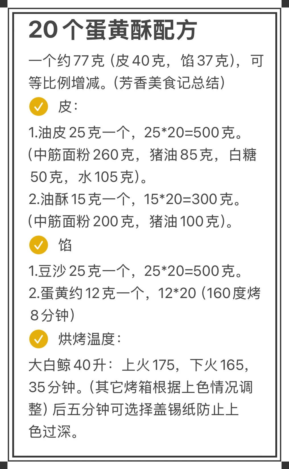 20个蛋黄酥配方