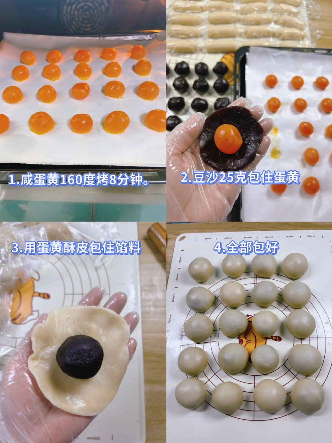 2.蛋黄约12克一个,12*20(160度烤8分钟)