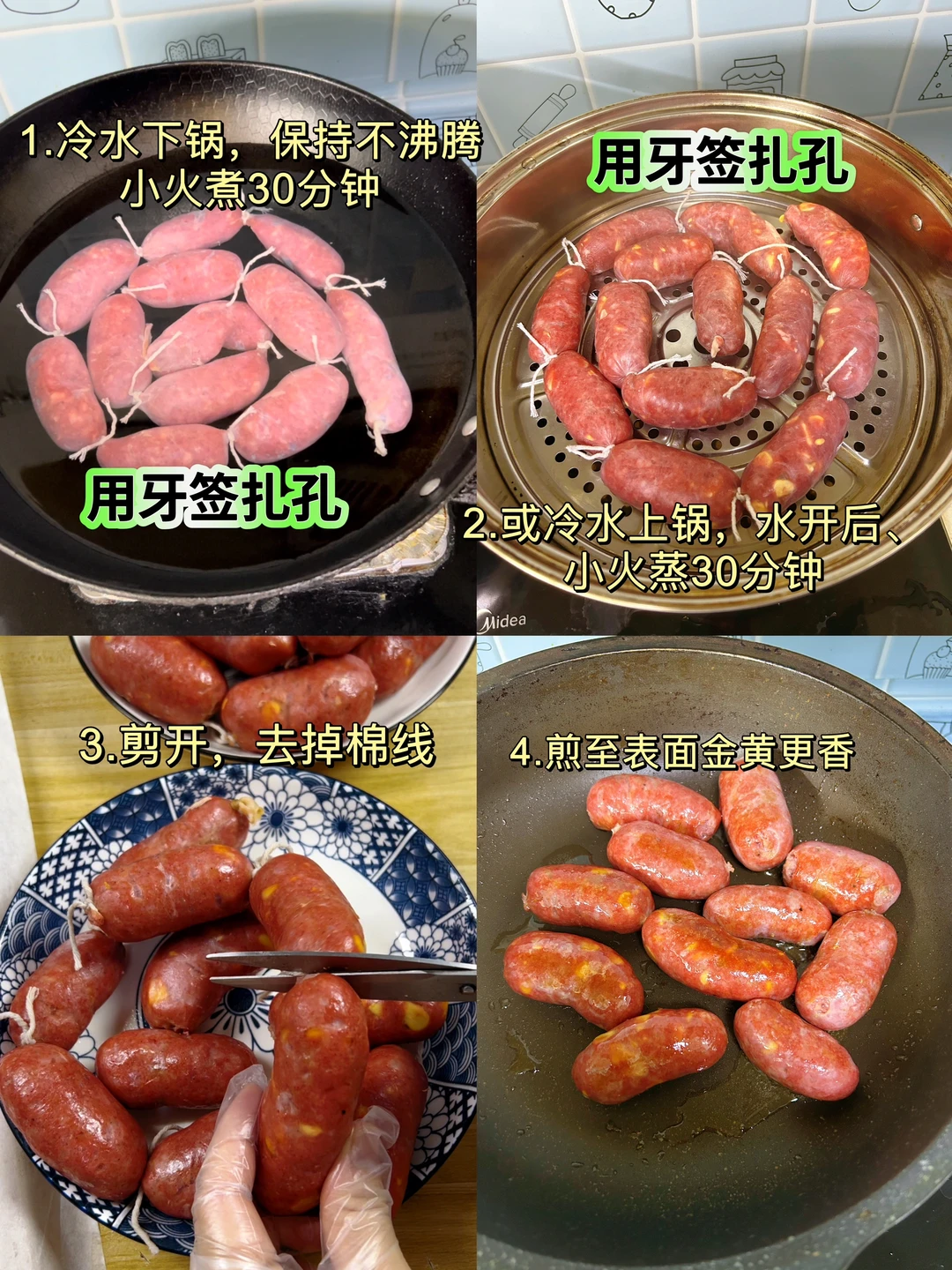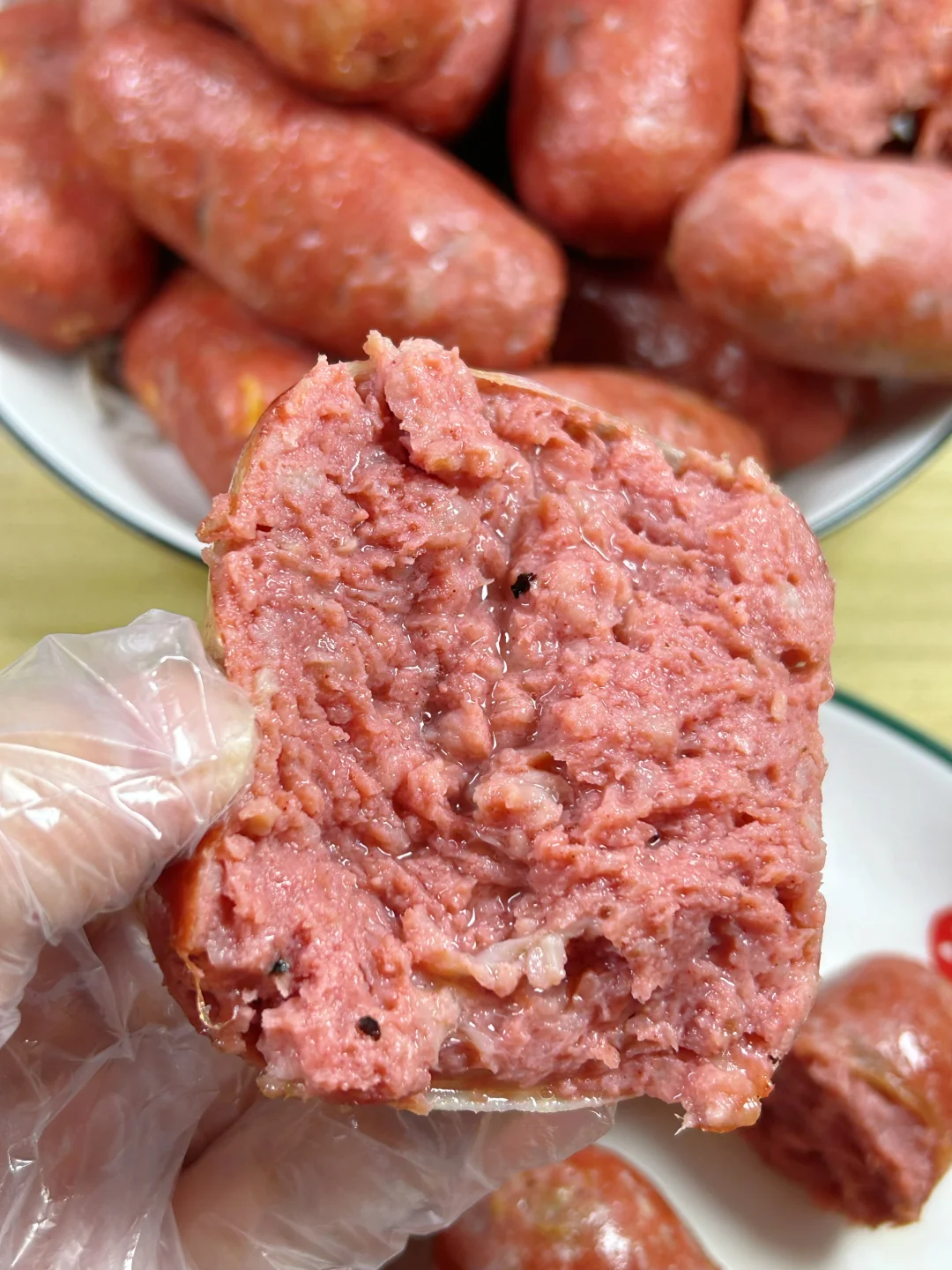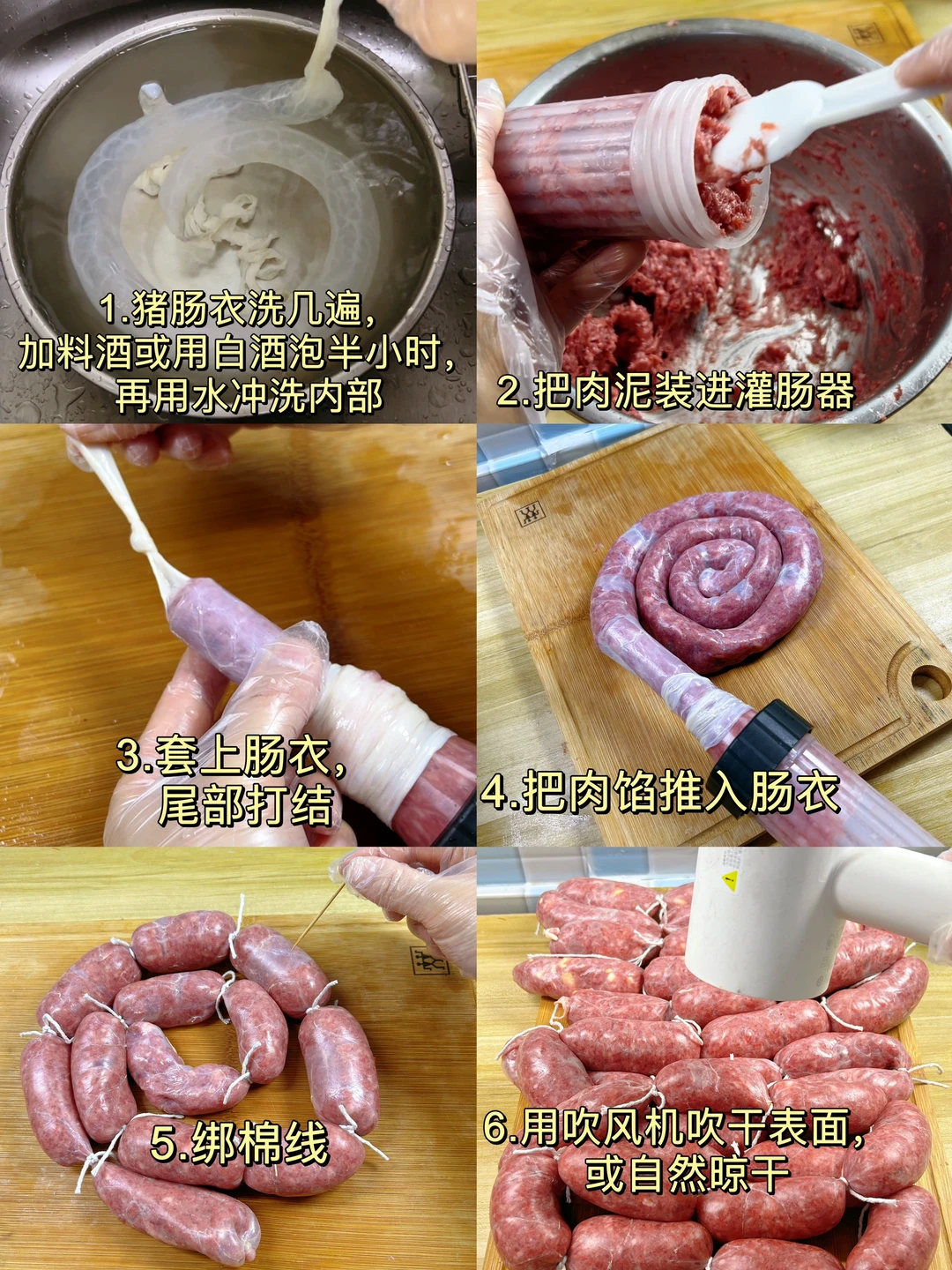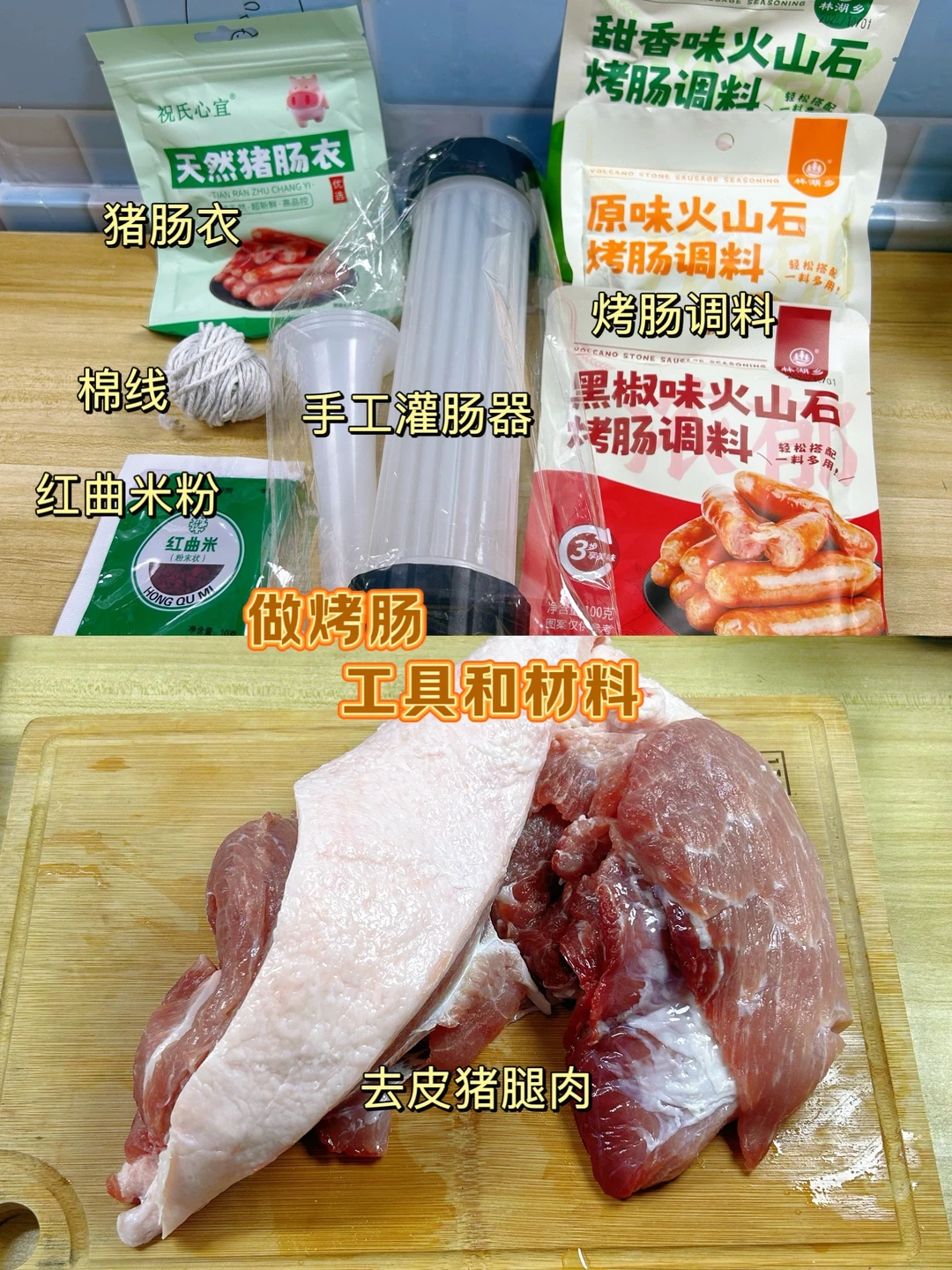 自己买猪肉,1块钱的肉做1根烤肠,放心吃