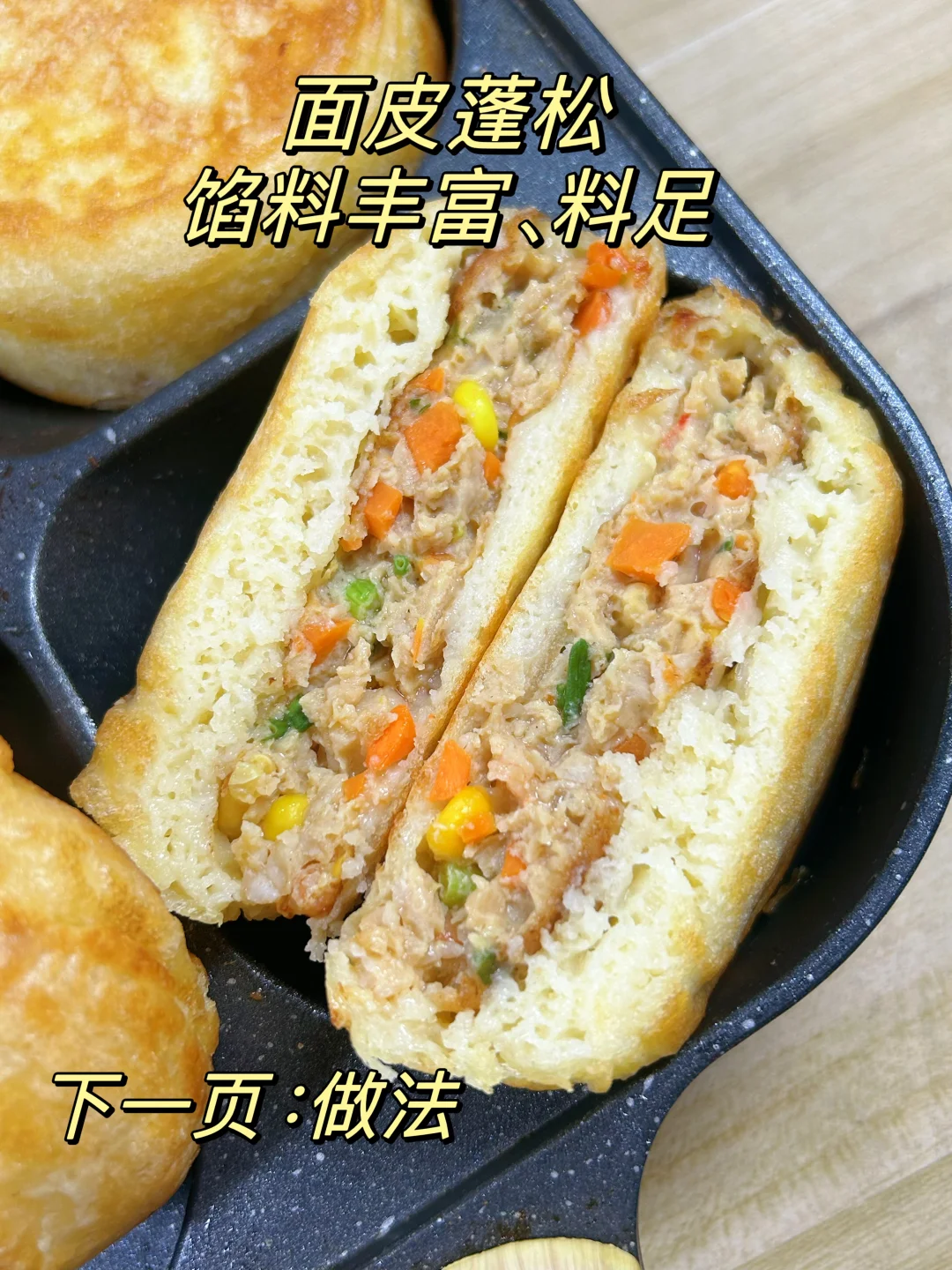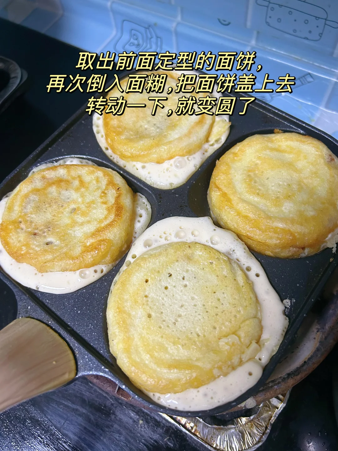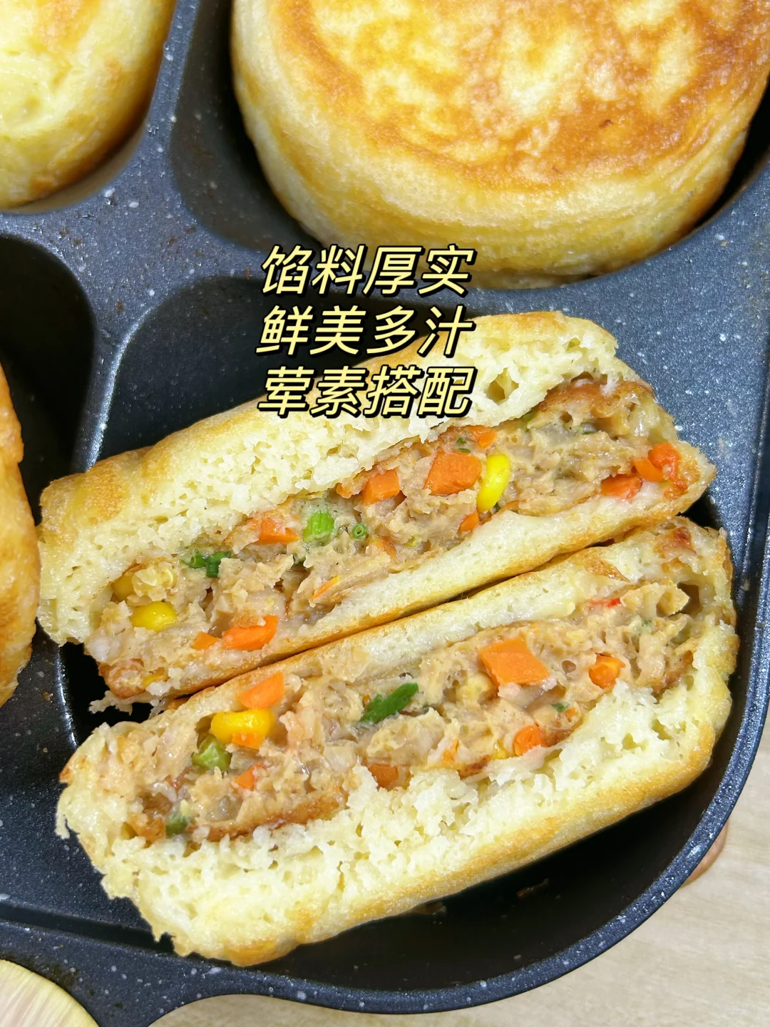 用我这个方法做的馅料厚实丰富,有肉有虾仁还有蔬菜和玉米,给孩子当早餐营养又美味。(可以提前一夜把面糊发起来,再放冰箱冷藏早上用)。 饼皮面糊: 面粉250克,食盐3克,酵母3克,水400克,鸡蛋2个。(加鸡蛋更蓬松更香) 肉馅:瘦肉末,虾仁丁,甜玉米粒,胡萝卜丁,葱花,洋葱丁,鸡蛋,生粉。 葱姜水,食盐,胡椒粉,生抽,蚝油,香油。 步骤: 1.把肉馅材料和调味料混合搅拌均匀,抓一把,放热油里,按压一下成饼。翻面小火煎制两面金黄。做成厚肉饼。 2.取出肉饼,刷油,倒入面糊,放上肉饼,翻面至两面定型,取出。 3.再次刷油,倒入四份面糊,盖上四个半成品饼,煎至定型翻面。 4.煎至两面金黄取出。