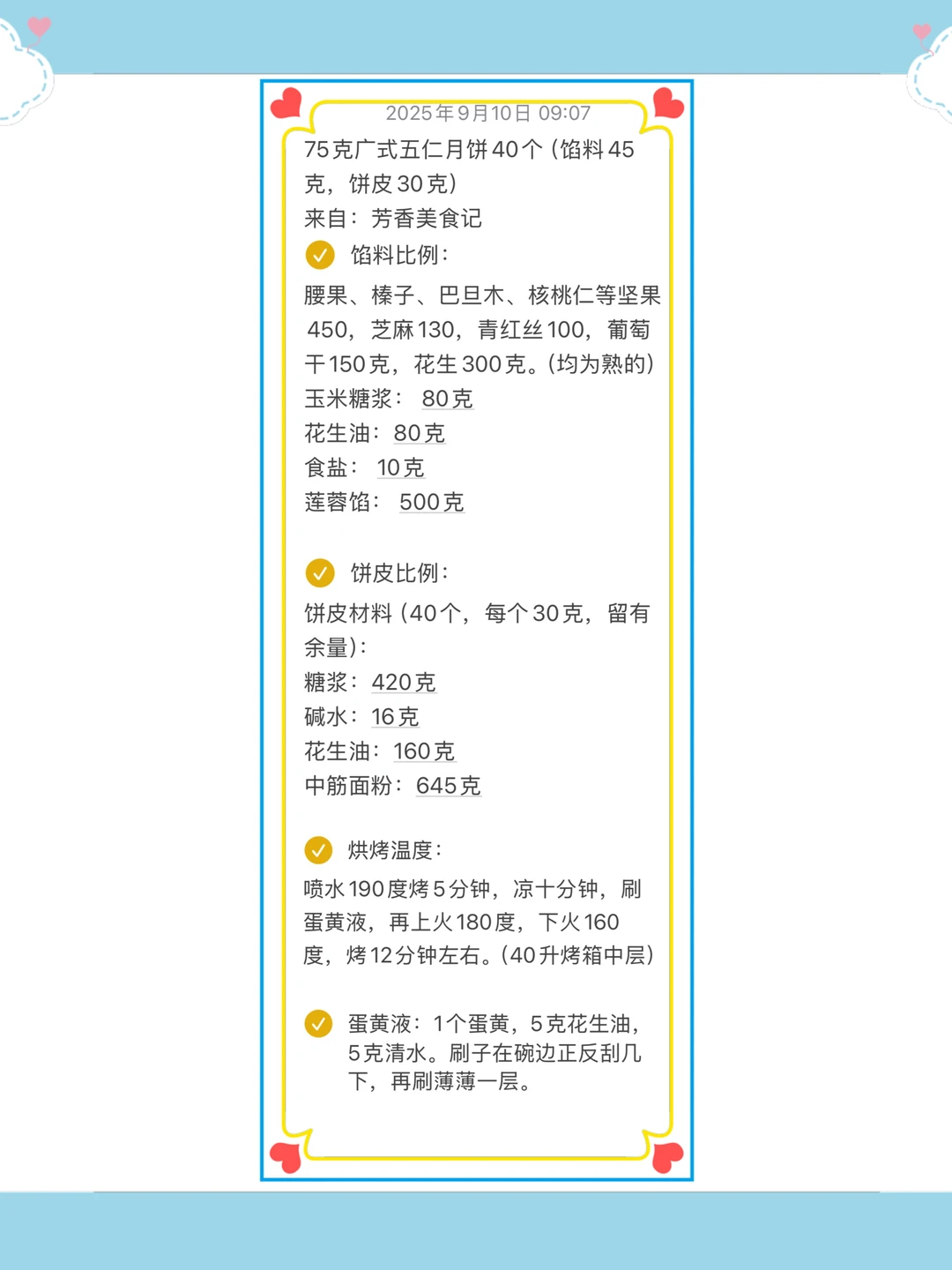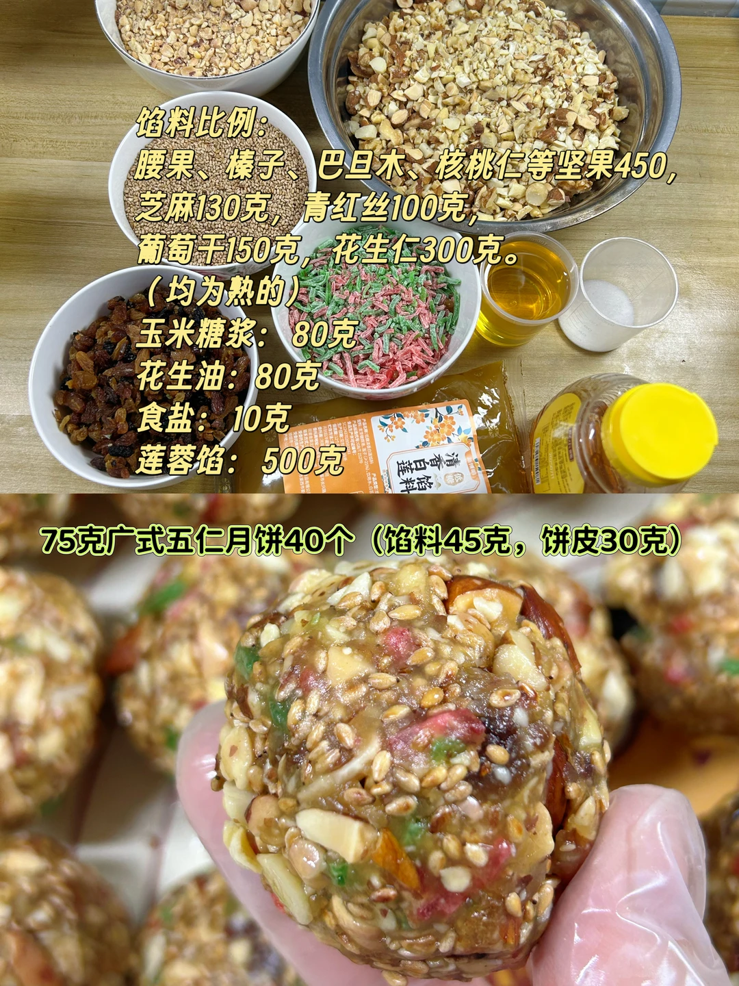 终于挖到不踩雷的广式五仁月饼方子!馅料坚果多到爆,饼皮油亮,40升烤箱直接照搬就行~